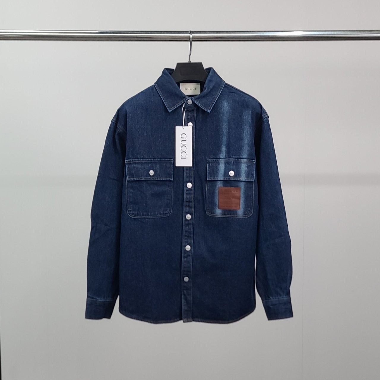 • 구* 레더패치 데님 셔츠