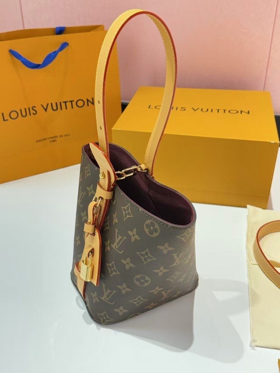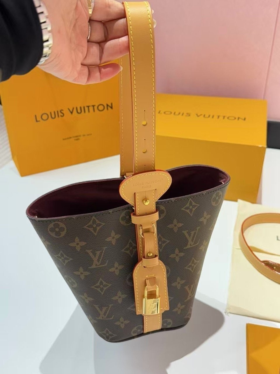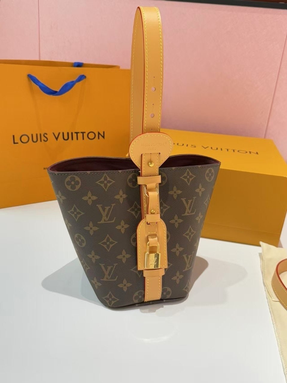 가죽 태그 + L.V 자물쇠까지 더해져서 클래식하고 럭셔리한 무드가 완성됐어요