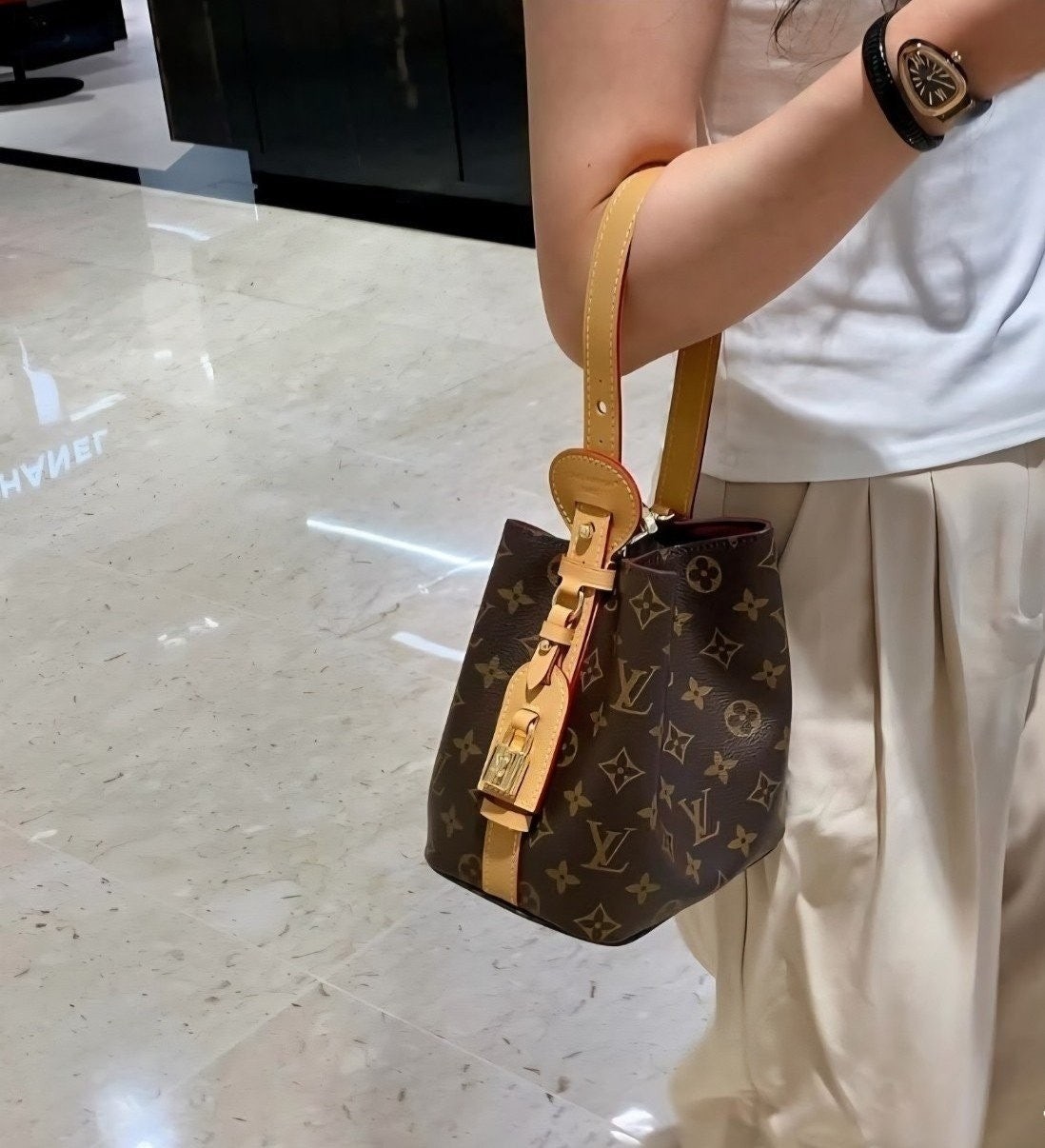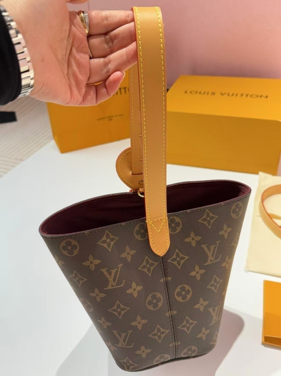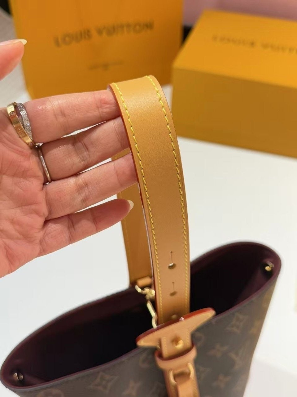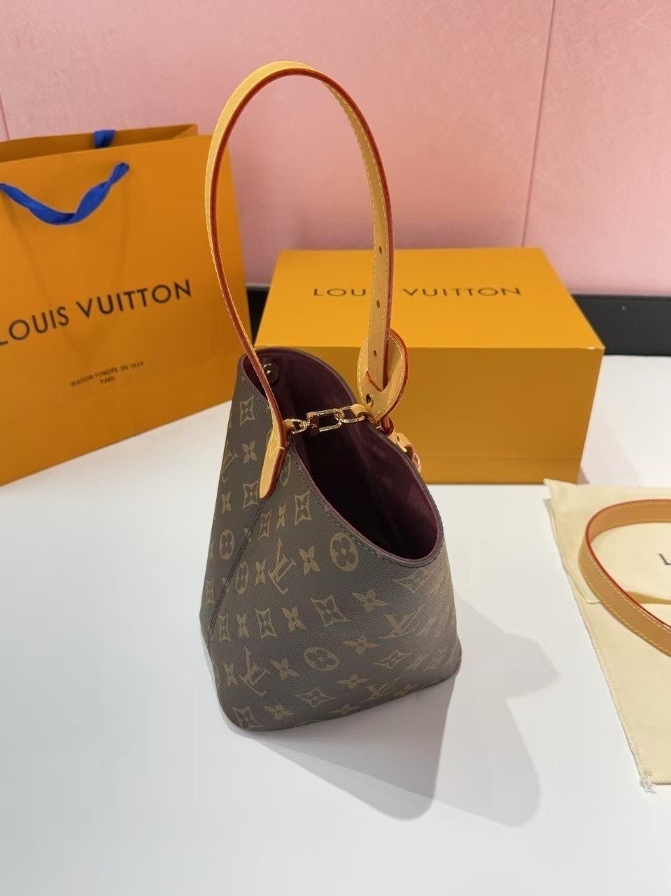 가죽 태그 + L.V 자물쇠까지 더해져서 클래식하고 럭셔리한 무드가 완성됐어요