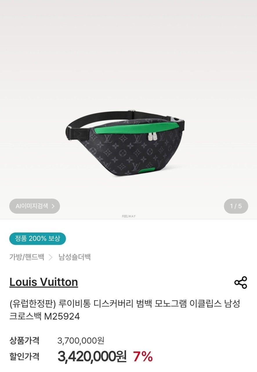 루* (유럽한정판) 디스커버리 범백 모노그램 이클립스 남성 크로스백 M25924 풀박스 요약정보 및 구매