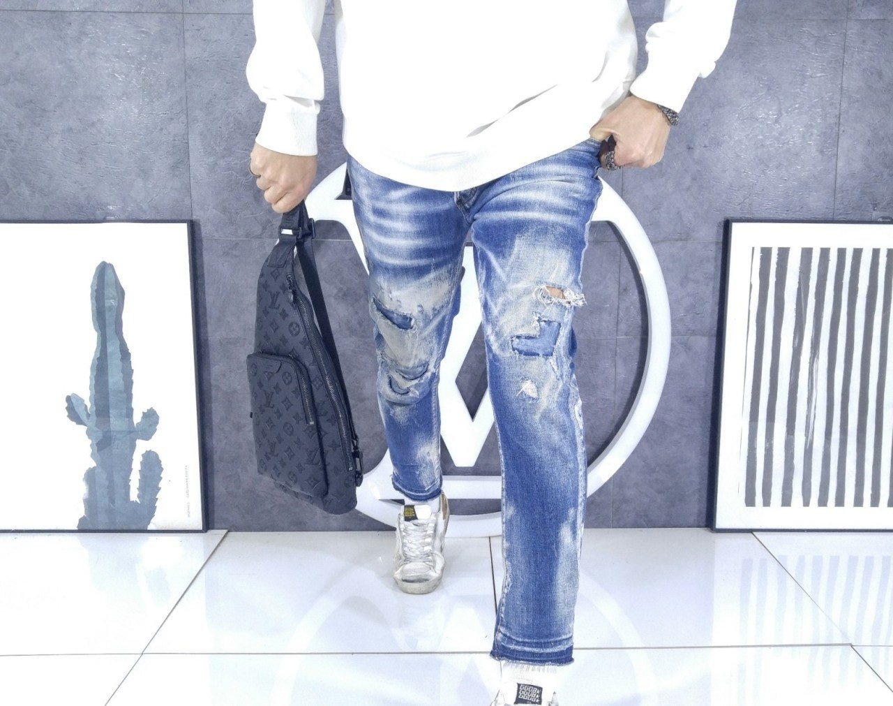 • 톰* 엠보 워싱 청바지