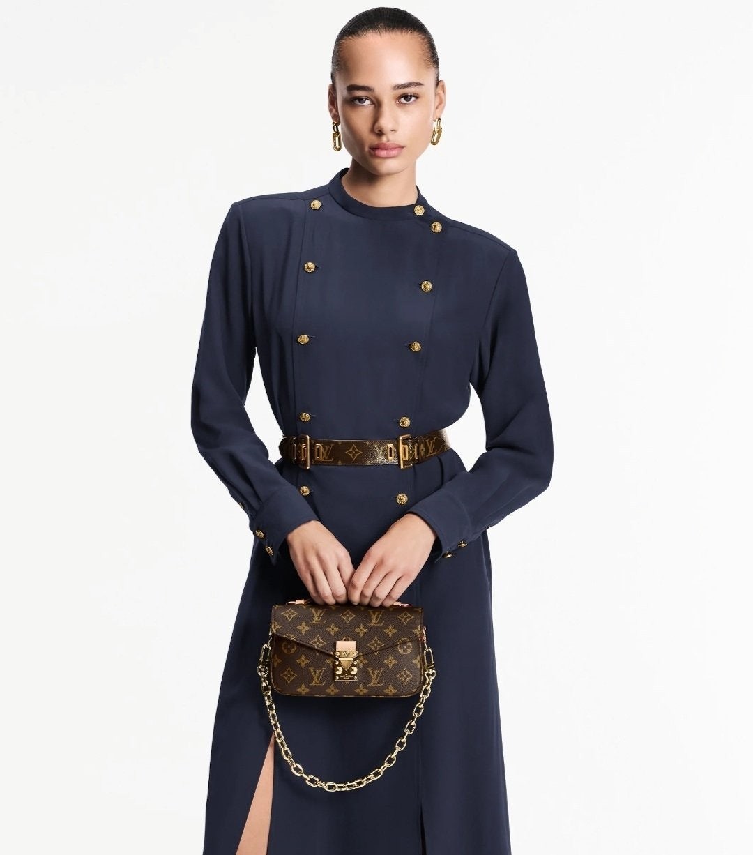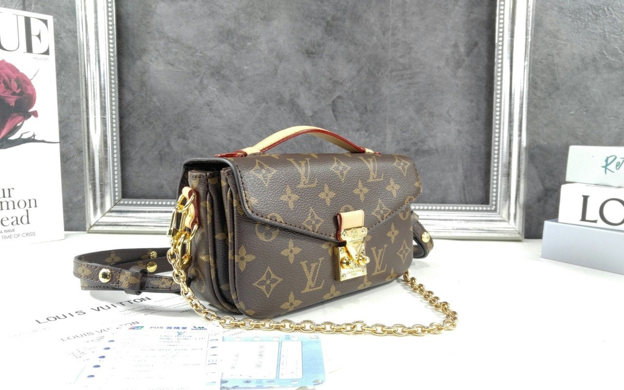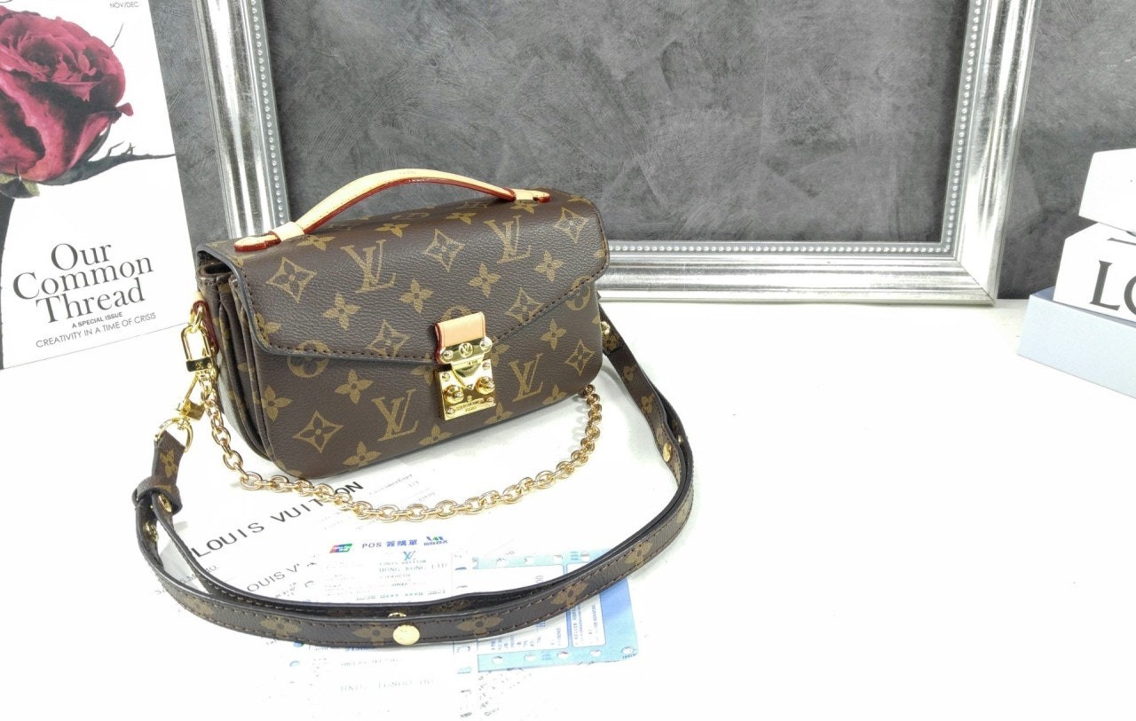 모노그램 캔버스와 천연 카우하이드 가죽 트리밍 및 S락 시그니처가 조화를 이루는 포쉐트 메티스 이스트 웨스트 백. 짧은 숄더 백 스타일로 트렌디하게 연출할 수 있는 골드 색상의 체인과 같은 새롭고 현대적인 디테일과 하우스의 상징적인 요소가 어우러진 디자인. 스마트폰을 보관할 수 있는 넉넉한 크기. 세 개의 내부 수납공간과 내부 및 외부의 지퍼형 포켓을 갖춘 아이템.