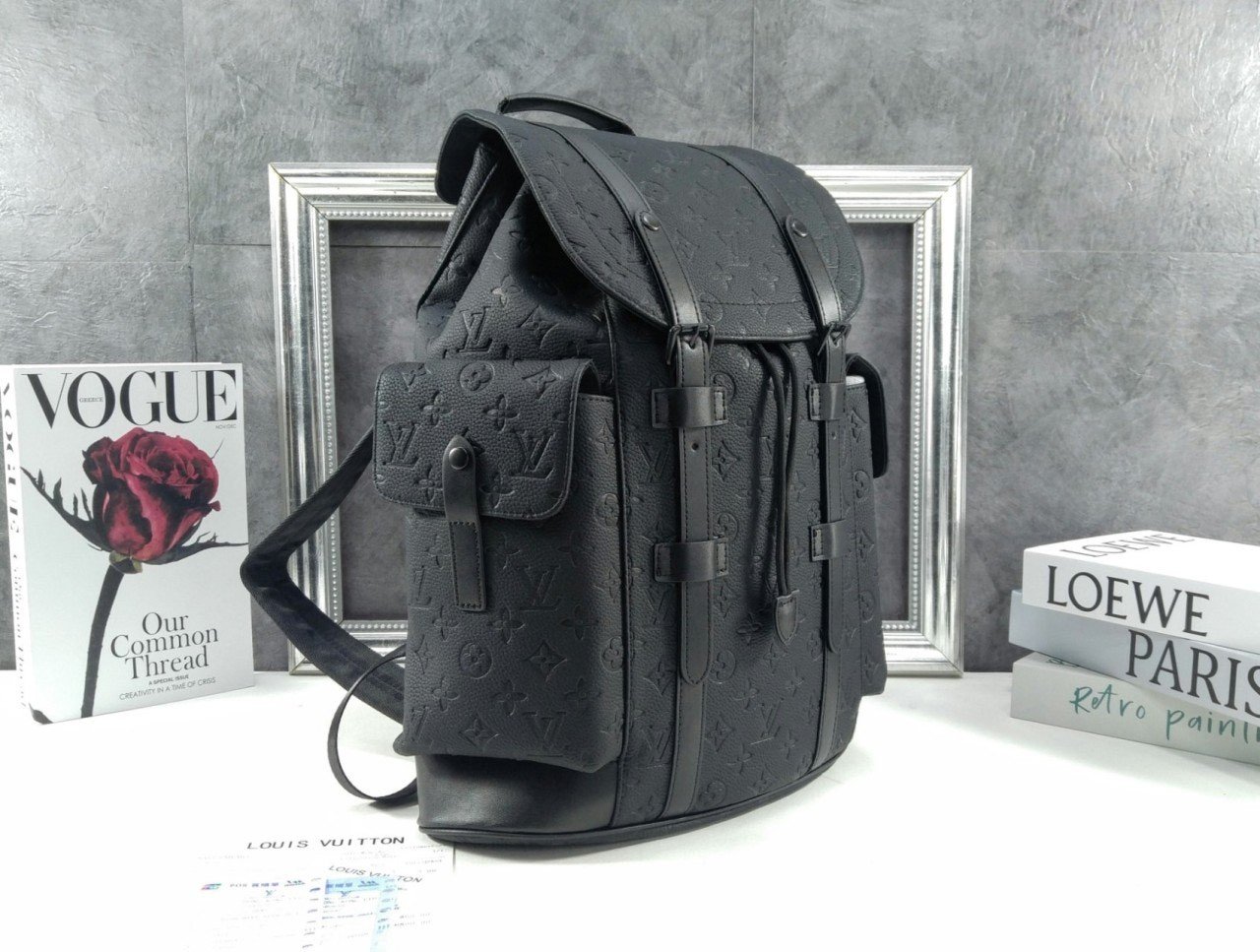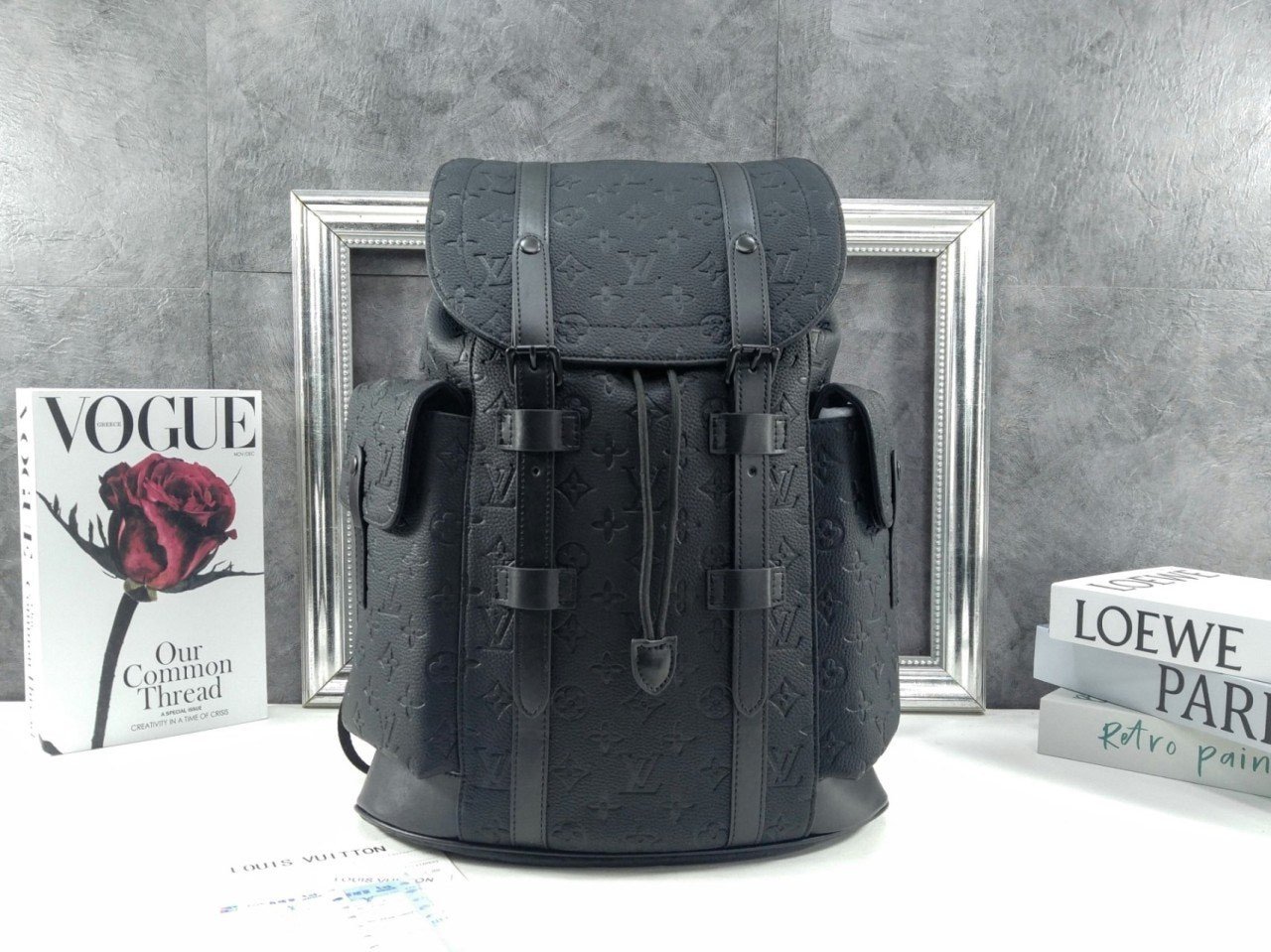 외부 옆면에는 두 개의 포켓을, 내부에는 다수의 기능적인 포켓을 갖춘 미디엄 사이즈의 크리스토퍼 MM 백팩. 모노그램 모티프를 양각으로 새긴 토뤼옹 가죽 소재. 블랙 색상의 가죽 스트랩. 매트 블랙 색상의 하드웨어. 드로스트링 및 프레스 스터드 잠금장치로 소지품을 안전하게 보관할 수 있는 아이템.