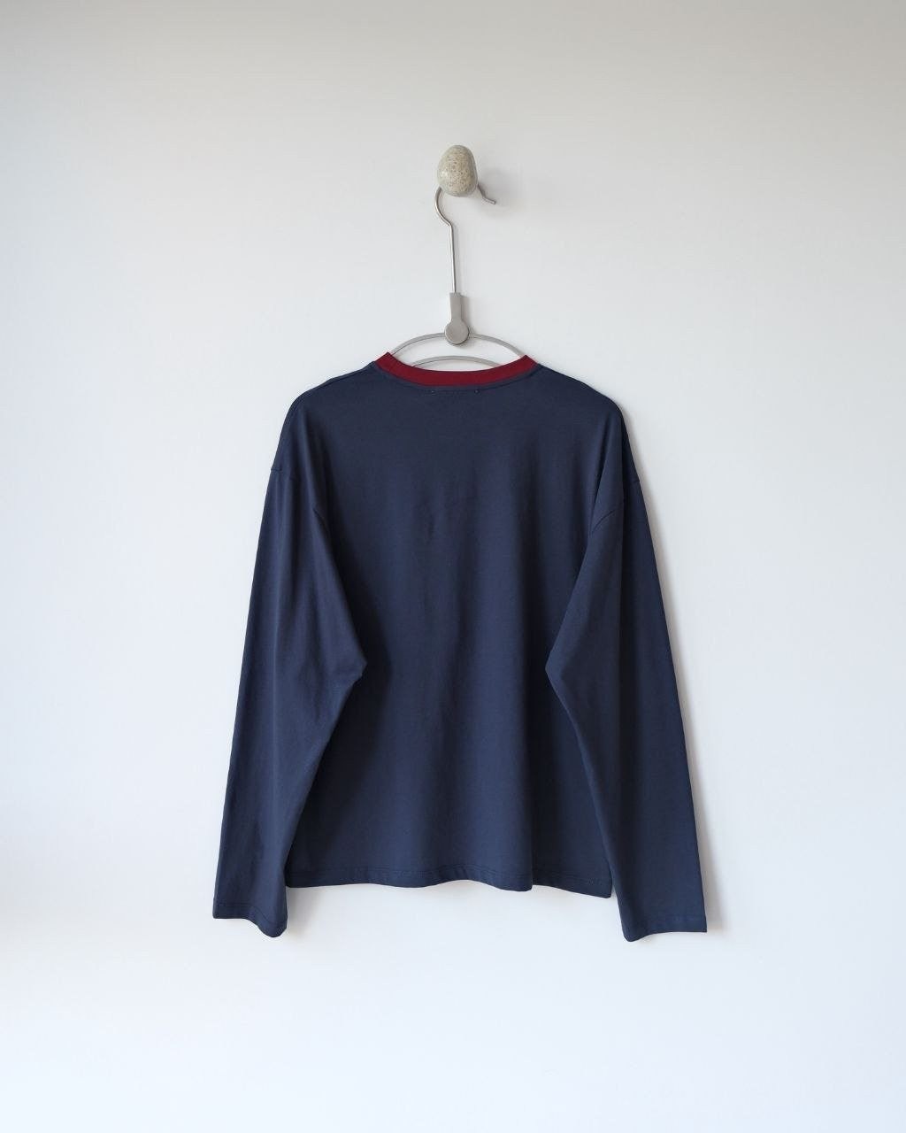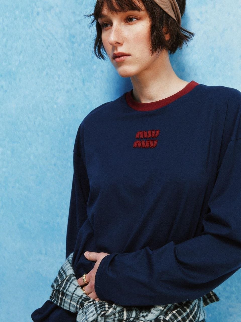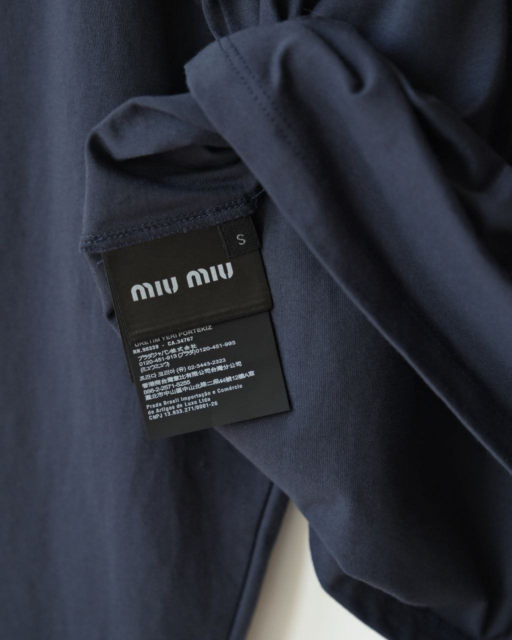 •(칩 탑재 최상급) MI* MI* SS26 Prelude 시리즈 로고 패치 자수 긴팔 티셔츠 입니다. 매장 구매 후 제작, 원단과 동일 사양으로 제작된 제품입니다. 원단은 전면 원판 그대로 제직한 100% 면 평직(저지) 소재를 사용했으며, 넥의 와인 컬러 리브와 가슴의 MIU 자수 패치 원단은 모두 맞춤 염색 처리하여 색 차이가 전혀 없는 0색차 버전입니다. 가슴의 MIU 로고 패치는 레이저 컷팅으로 정교하게 제작한 후, 자수기로 가장자리 둘레를 따라 봉제하여 완성하였고 착용 시 까슬거림이 없으며 뒷면에 실밥이 남지 않도록 마감했습니다.