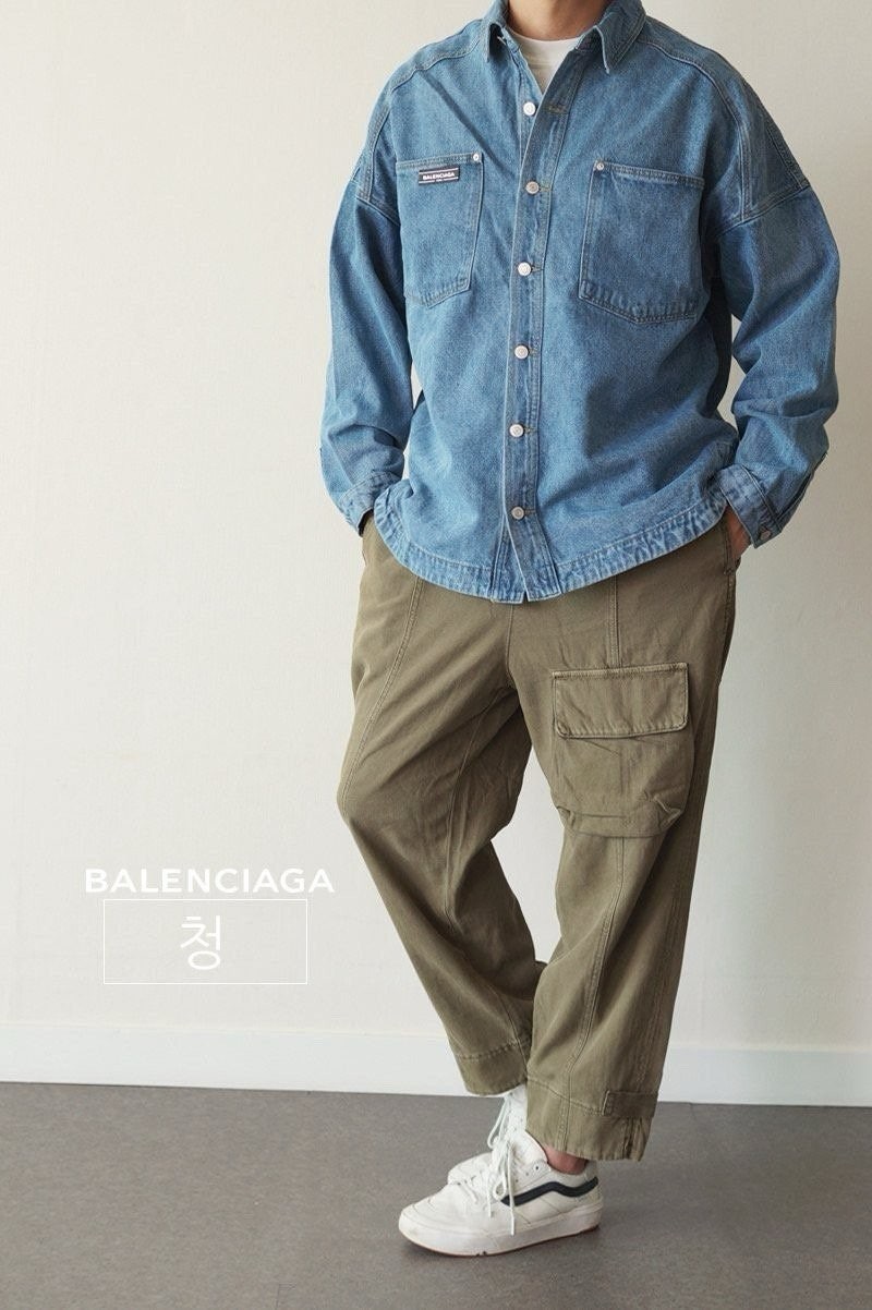 셔츠형태의 데님 자켓으로 오버핏의 네츄럴한 착용감이 돋보이는 제품입니다.