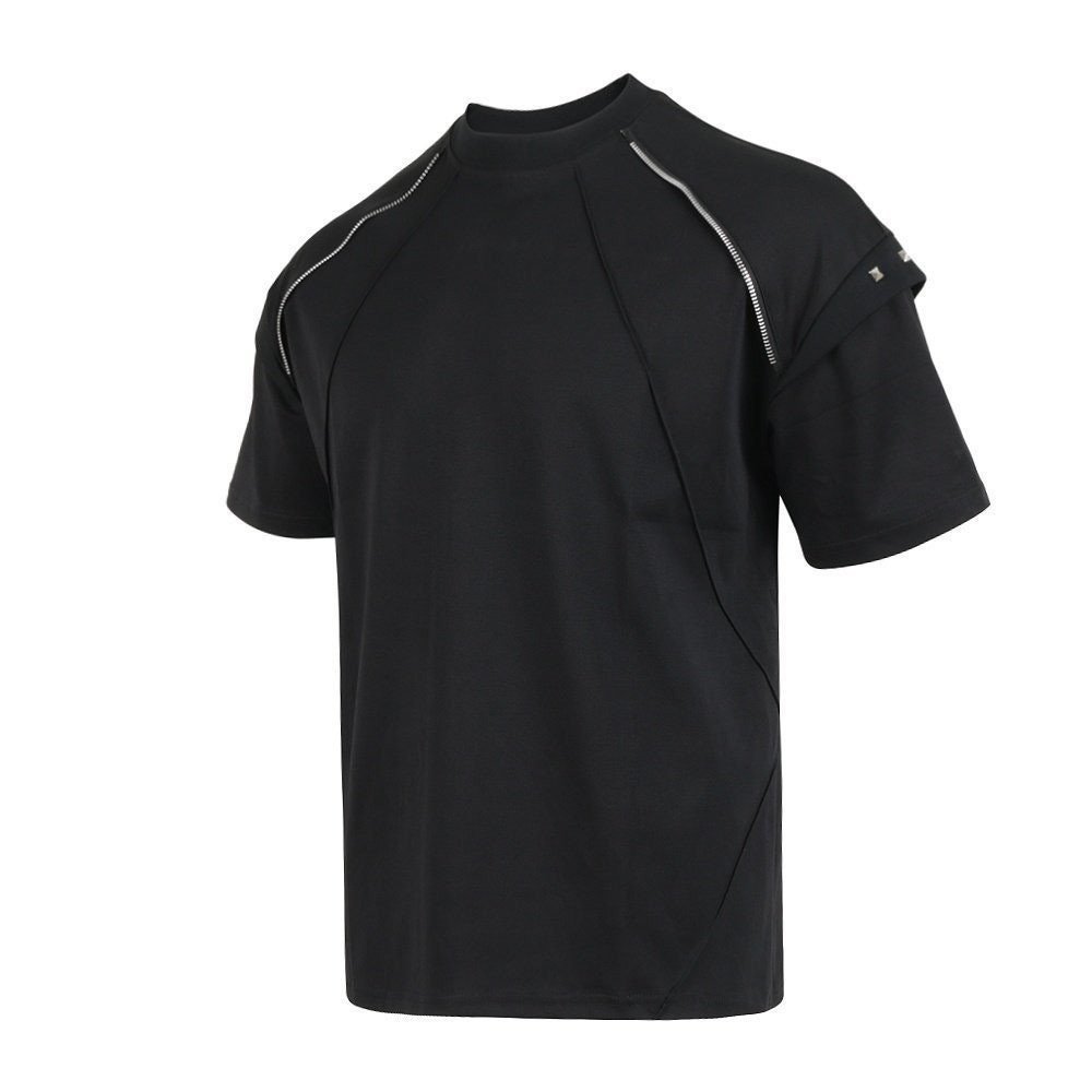 발*** 지퍼 락스터드 실켓 라운드 티 > 국내의류
