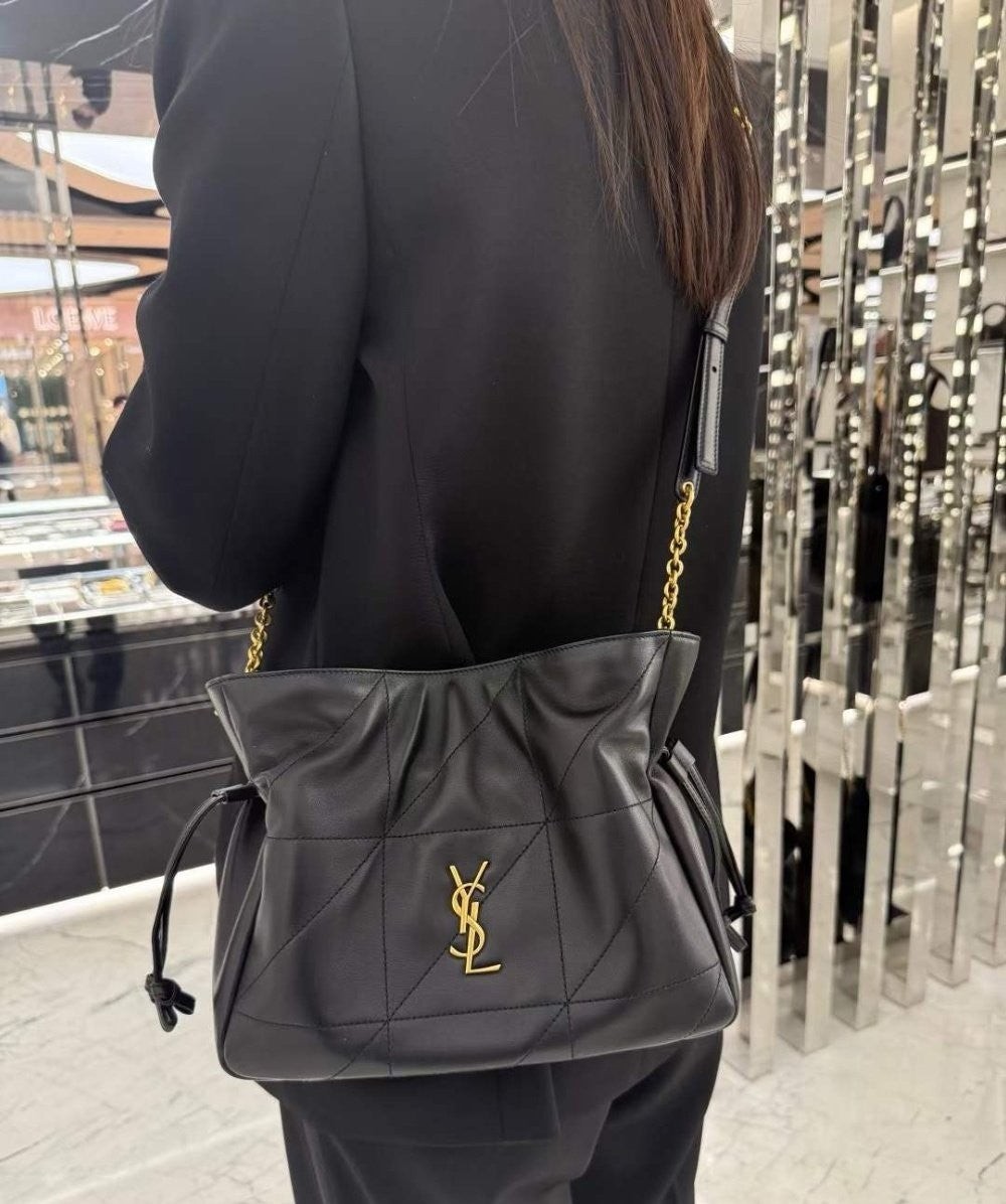 가볍고 컴팩트한 백, 체인 스트랩을 활용하여 크로스바디 백으로 연출 가능.