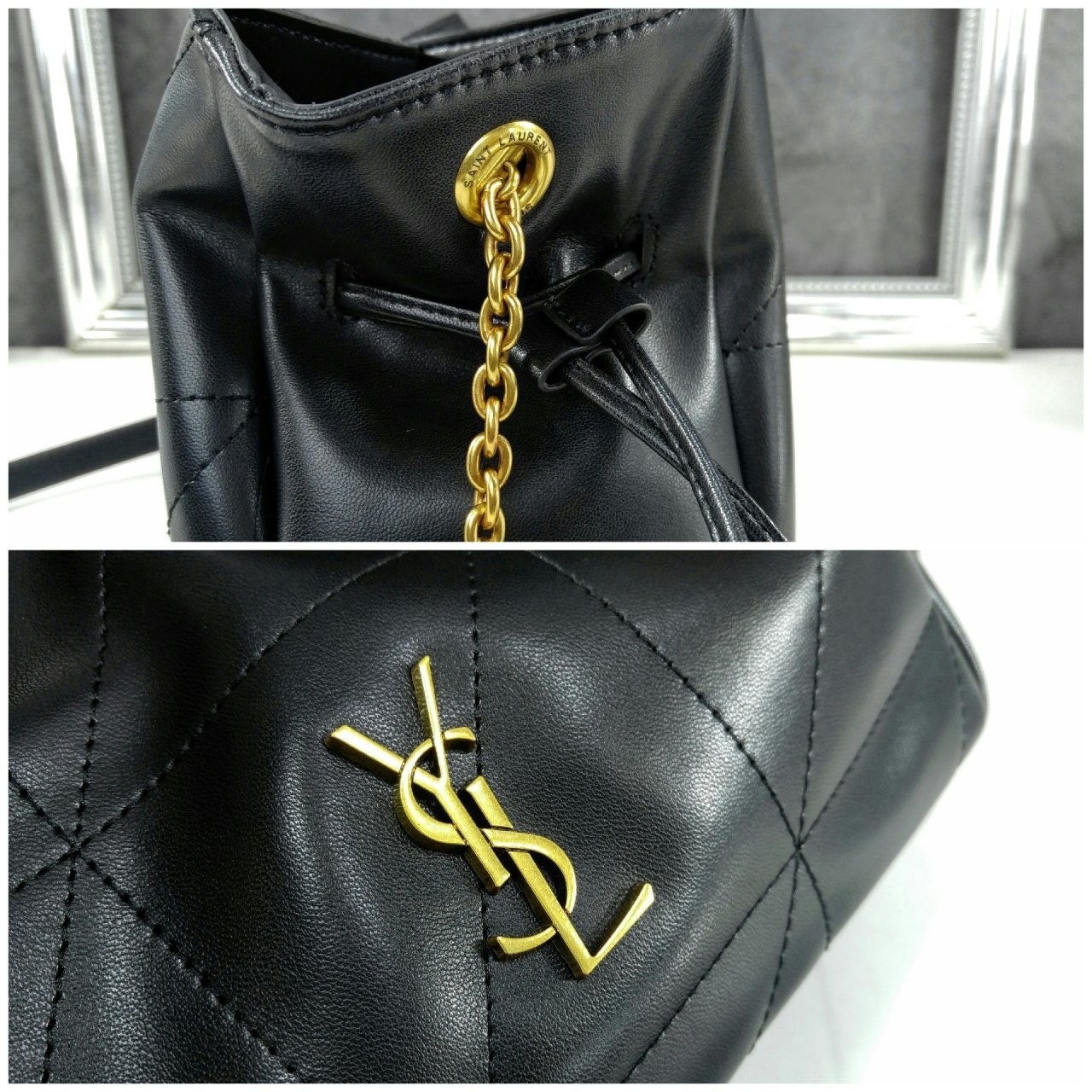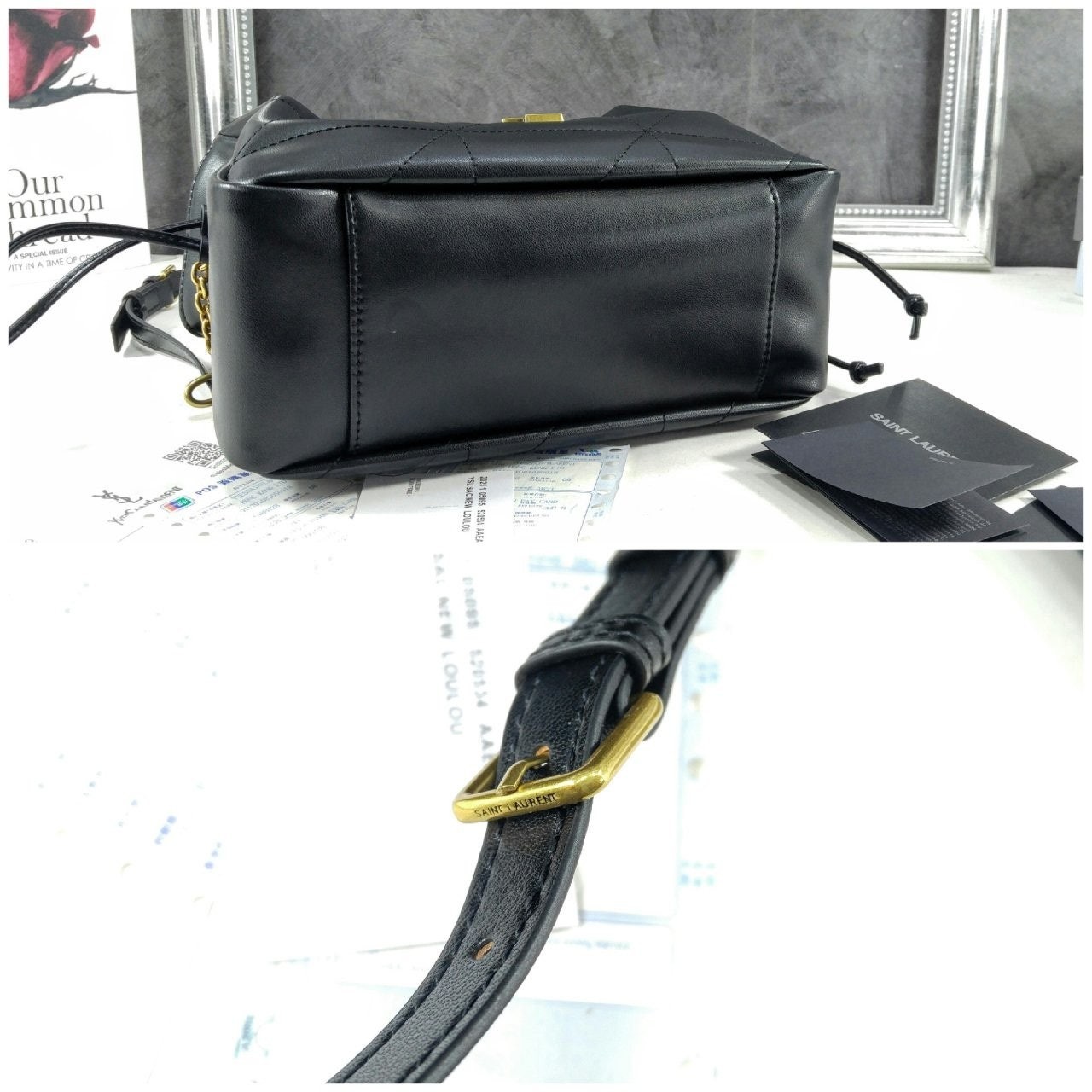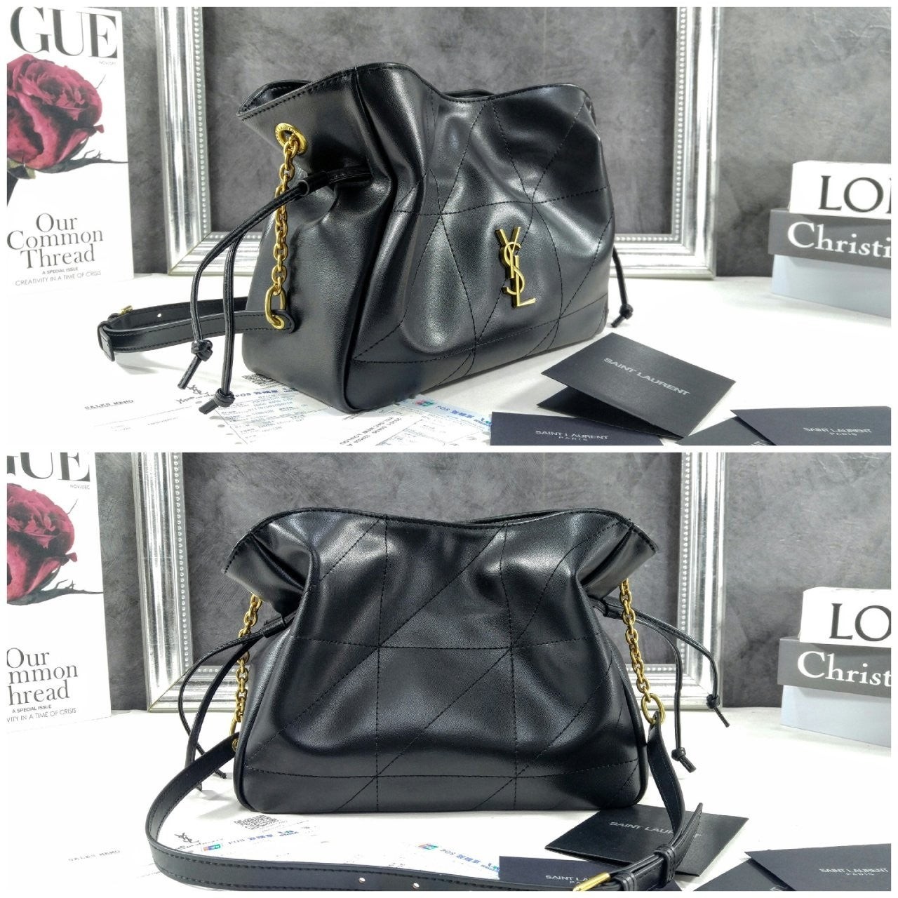 JAMIE 숄더 파우치 버전. CASSANDRE 장식, CARRÉ RIVE GAU크*E 탑스티치 장식.