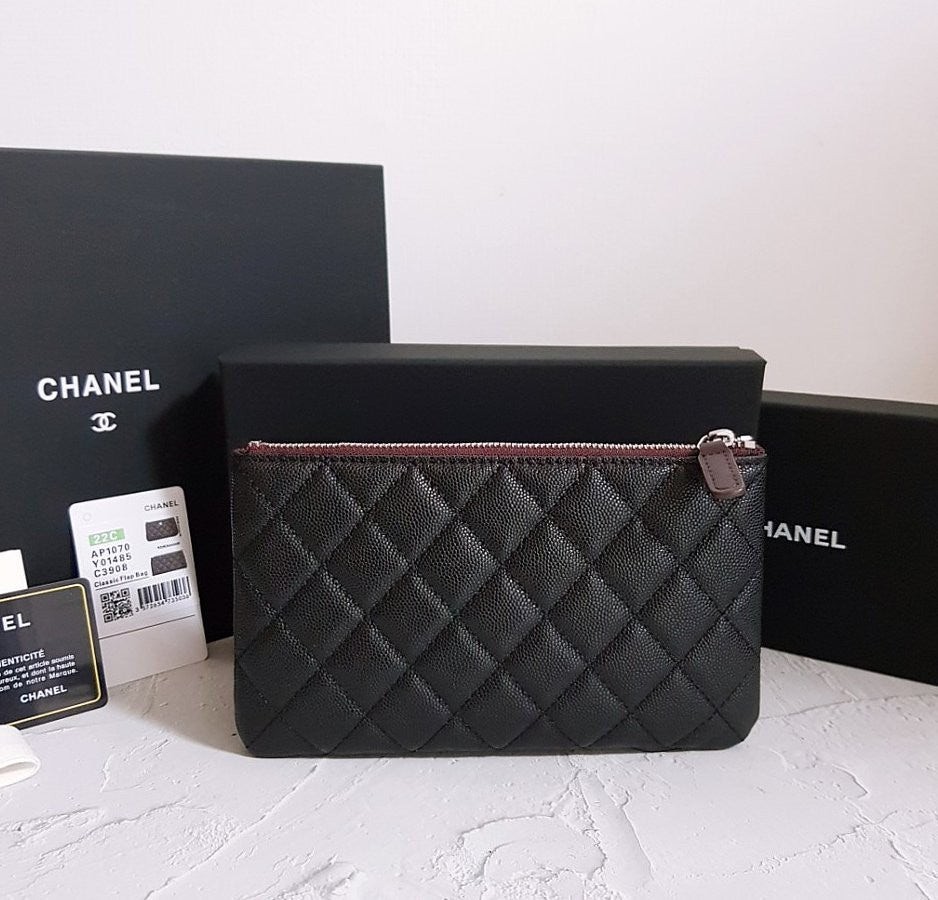 • 샤* 고급 박스 캐비어 파우치 클러치 은장 스몰