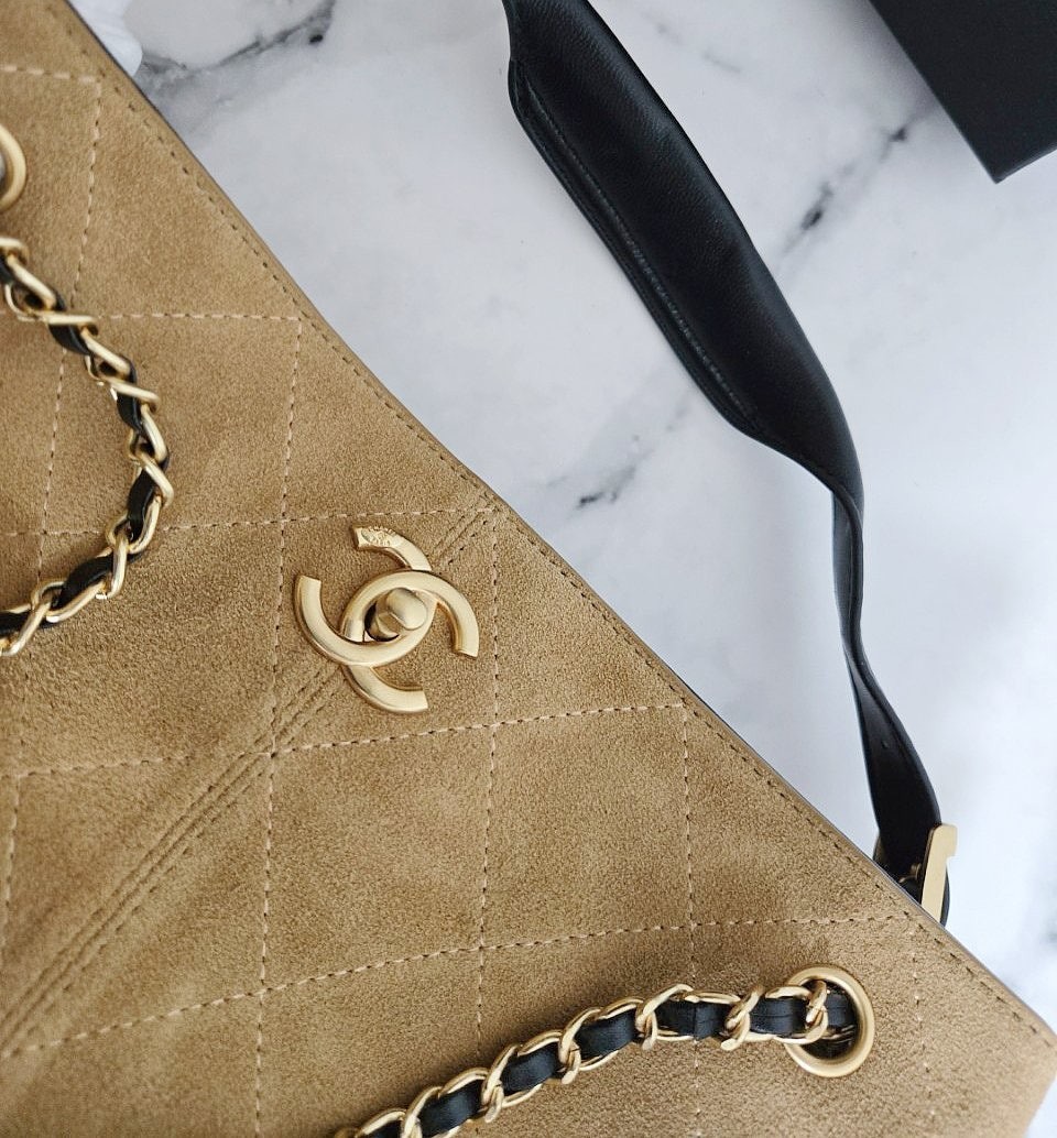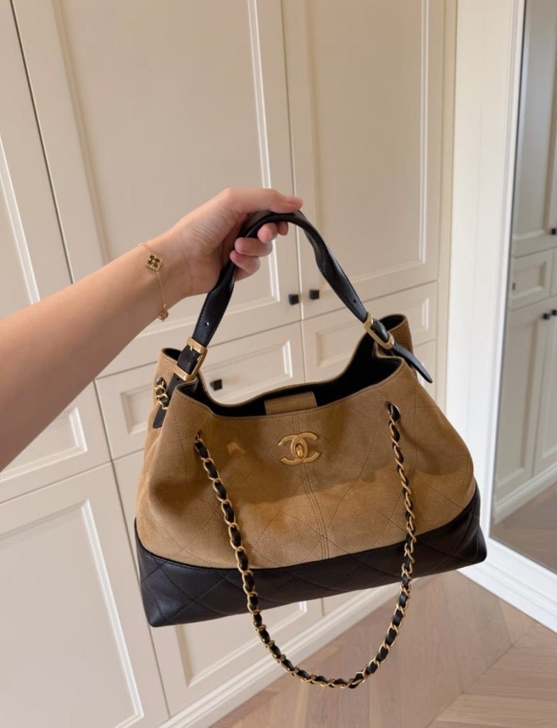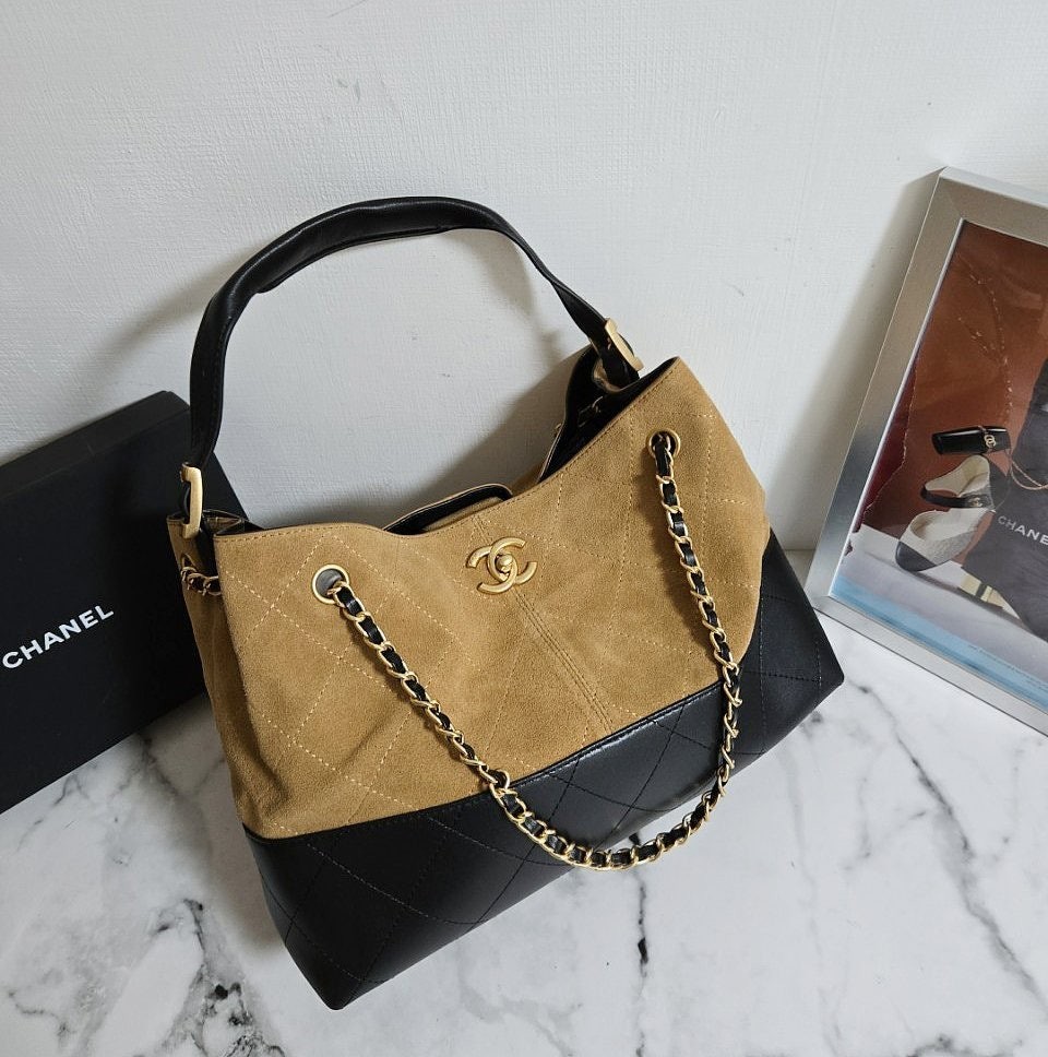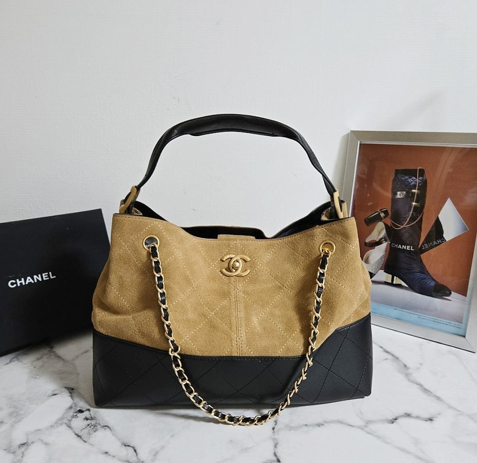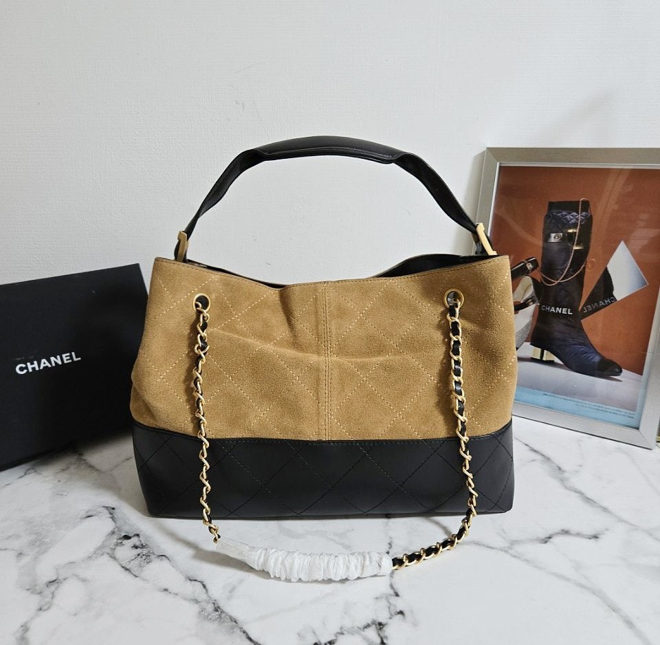 • 샤* 고급 25A 공방 스웨이드 투톤 쇼퍼 호보백 브라운