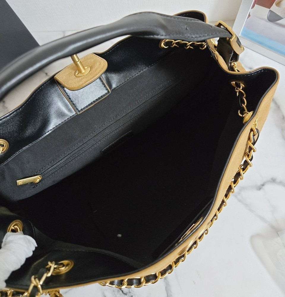 • 샤* 고급 25A 공방 스웨이드 투톤 쇼퍼 호보백 블랙