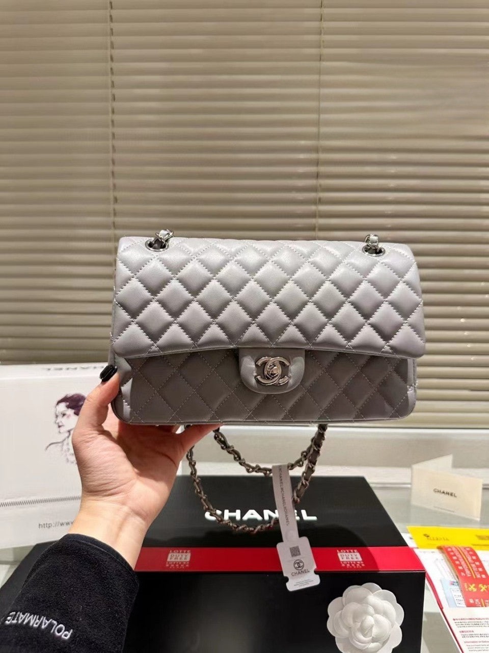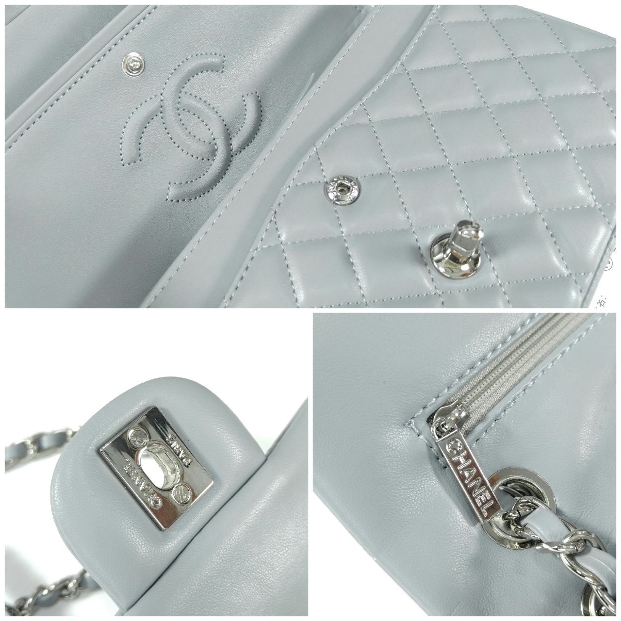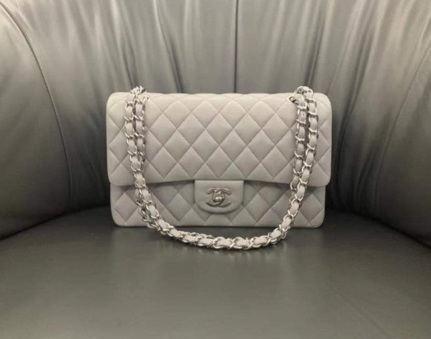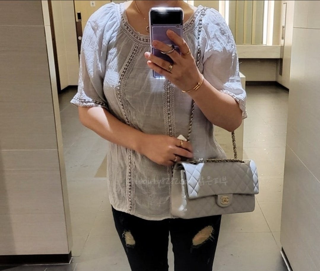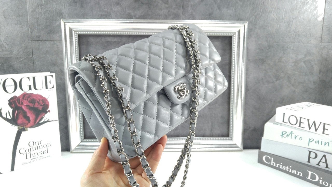 샤* 클래식 미듐 플랩백 램스킨 그레이 은장 A01112 풀박스 고급 요약정보 및 구매