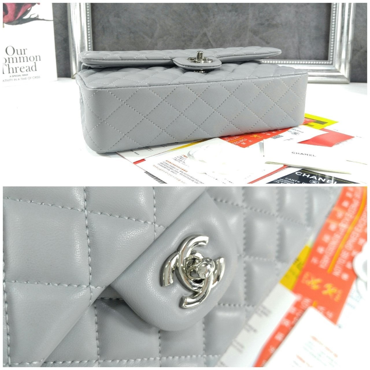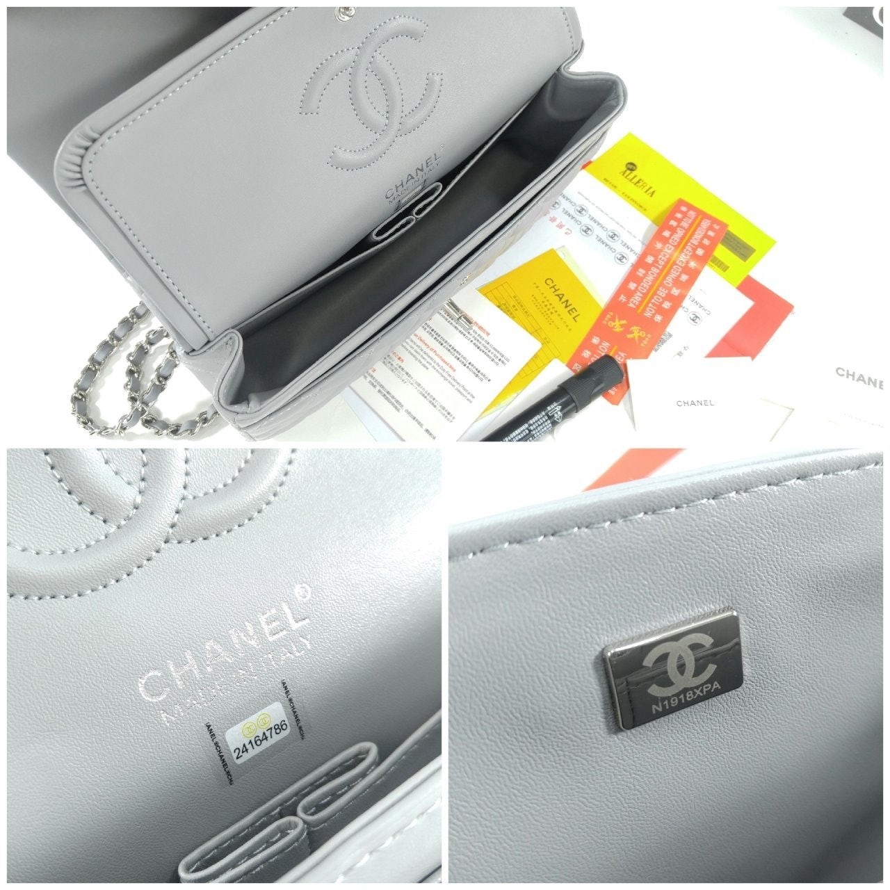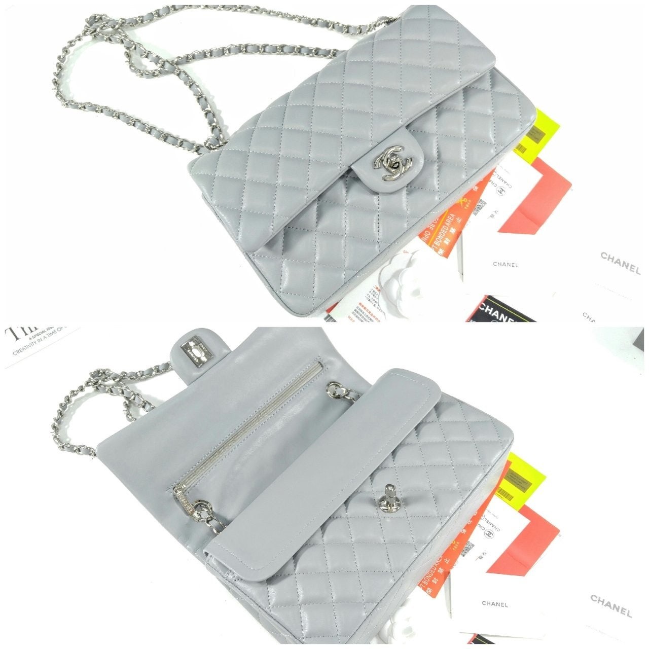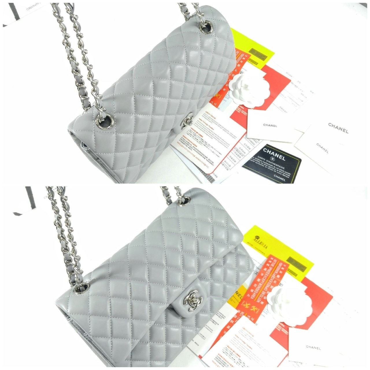 샤* 클래식 미듐 플랩백 램스킨 그레이 은장 A01112 풀박스 고급 요약정보 및 구매