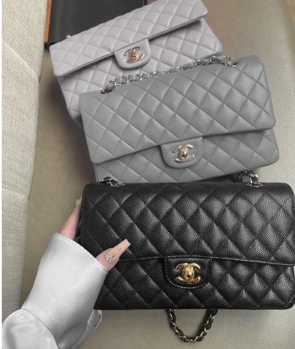 • 샤* 고급 리뉴얼 클래식 캐비어 미듐 금장