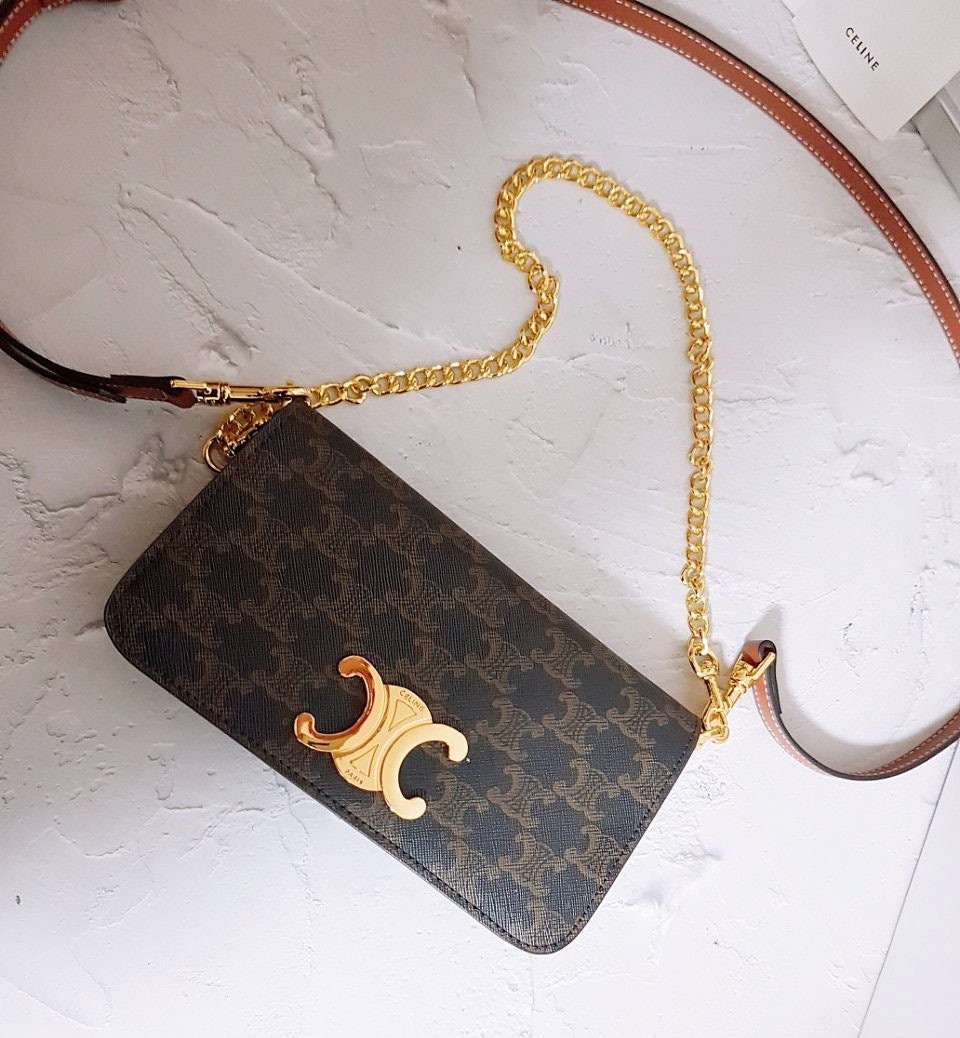 • 샤* 체인 지갑 카프스킨  골드 메탈 블랙 Wallet On Chain Calfskin  Gold Black 풀박스