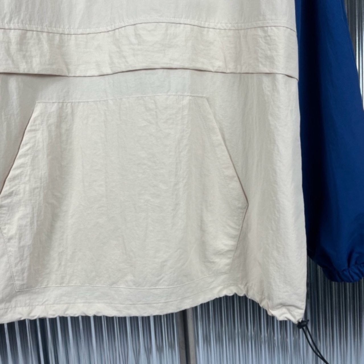 바스락 거리는 나일론 혼방 원단 나그랑 배색으로 심플 하면서도 밋밋함 없이 제작 되었으며 루즈한 오버핏으로 남녀공용 제품으로도 찰떡 입니다. 하단에 스트링이있어 기장감을 자유롭게 조절 가능하며 커플룩으로 강추 드립니다.
