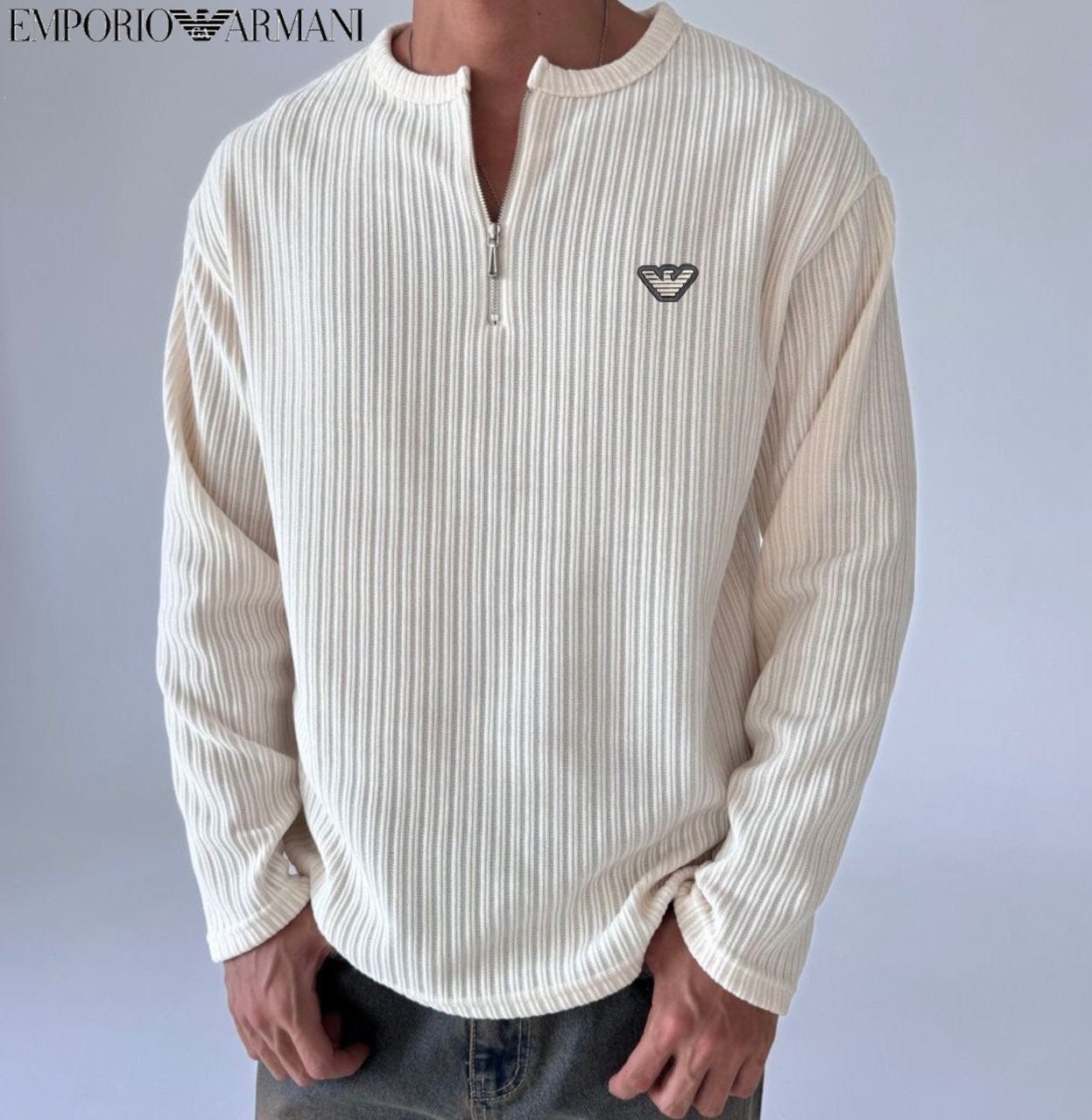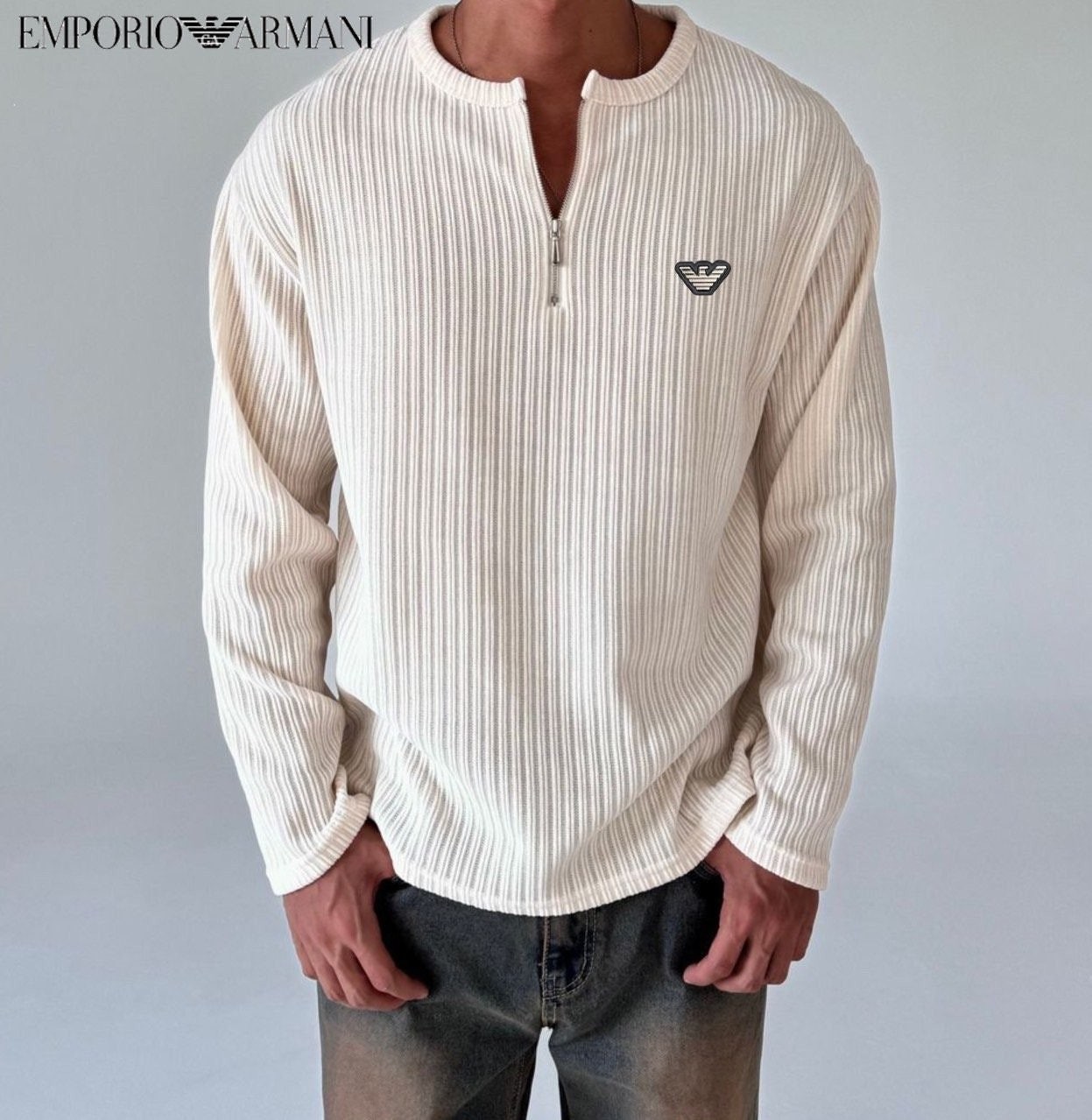 • 알** 지퍼 헨리넥 골지 티셔츠