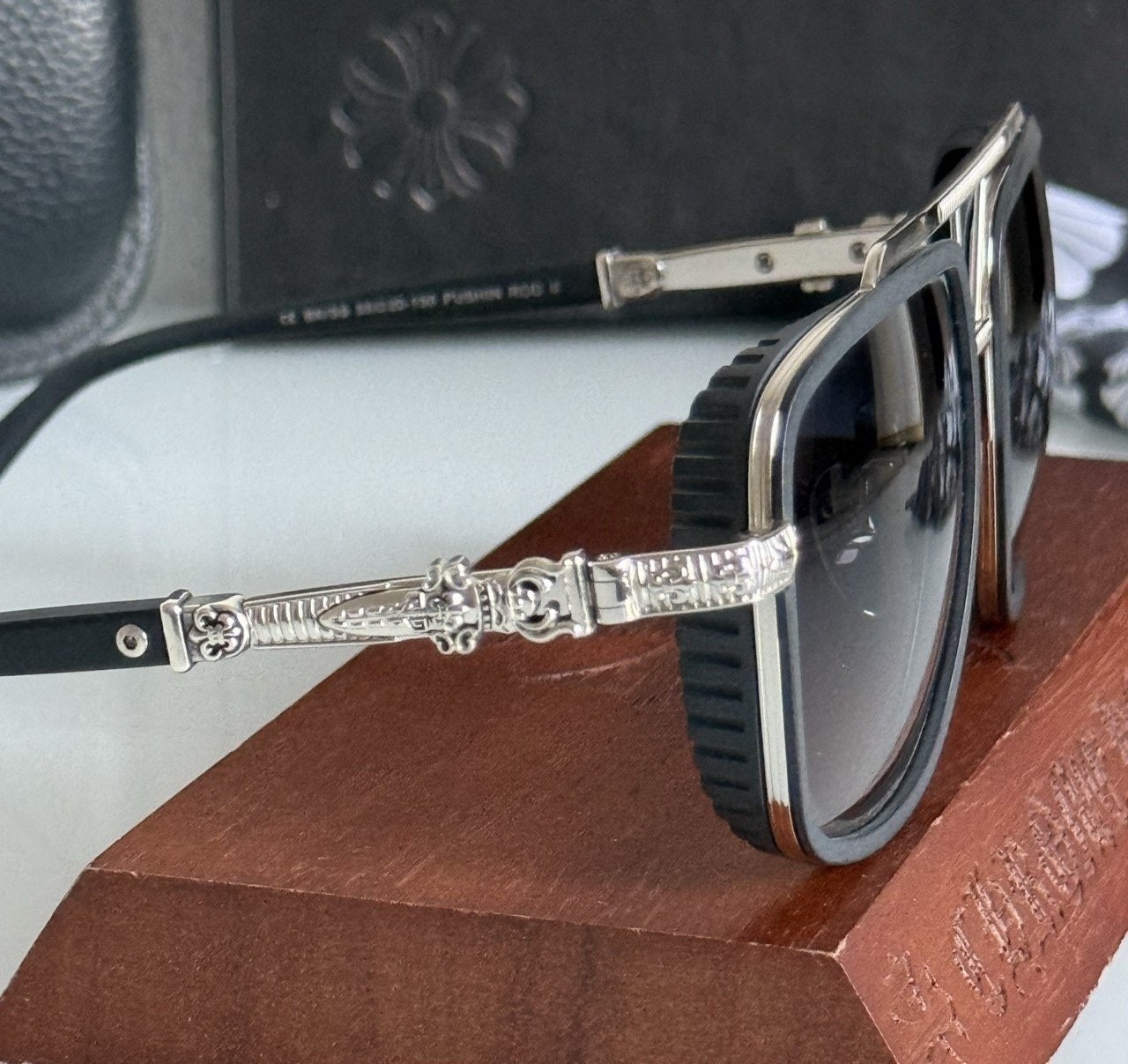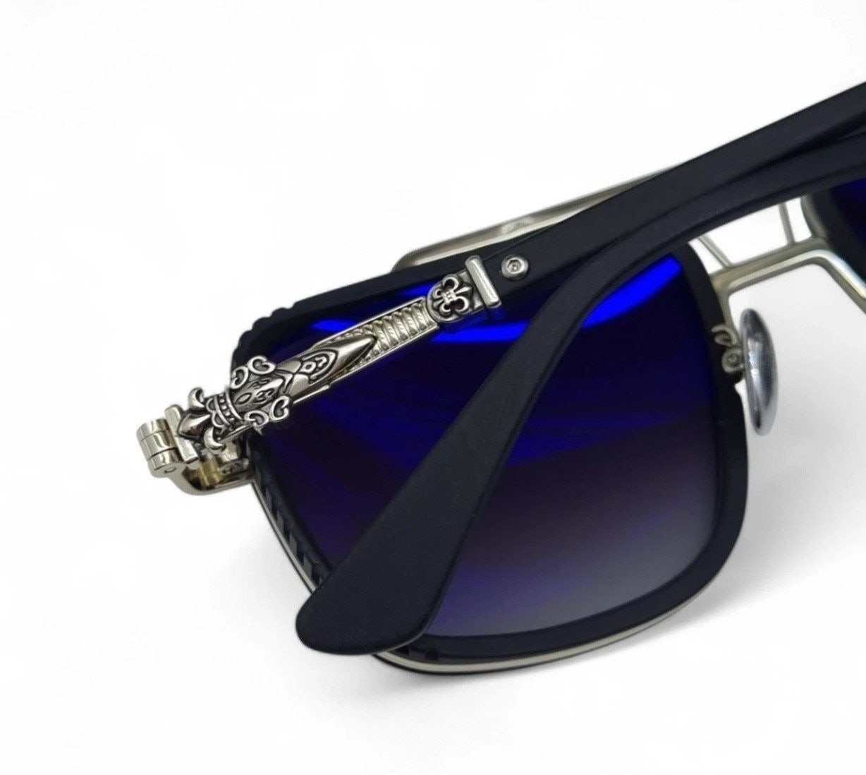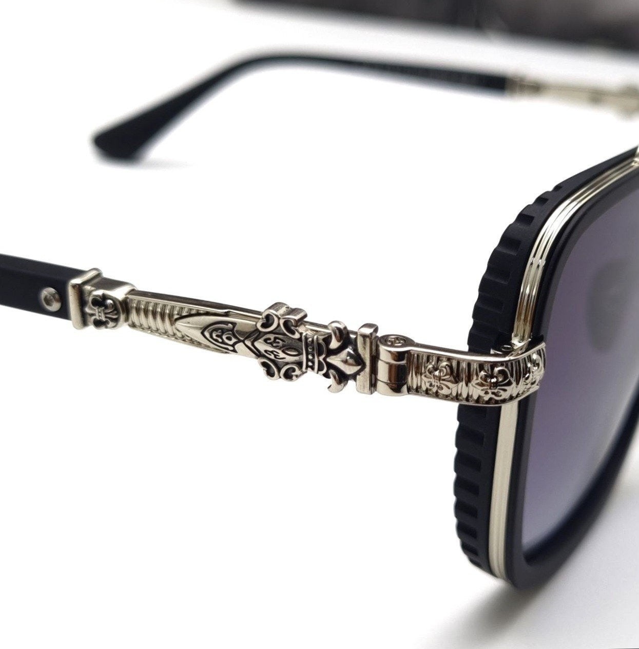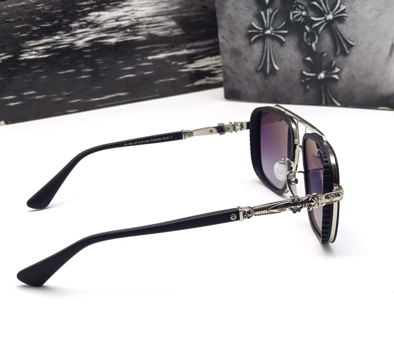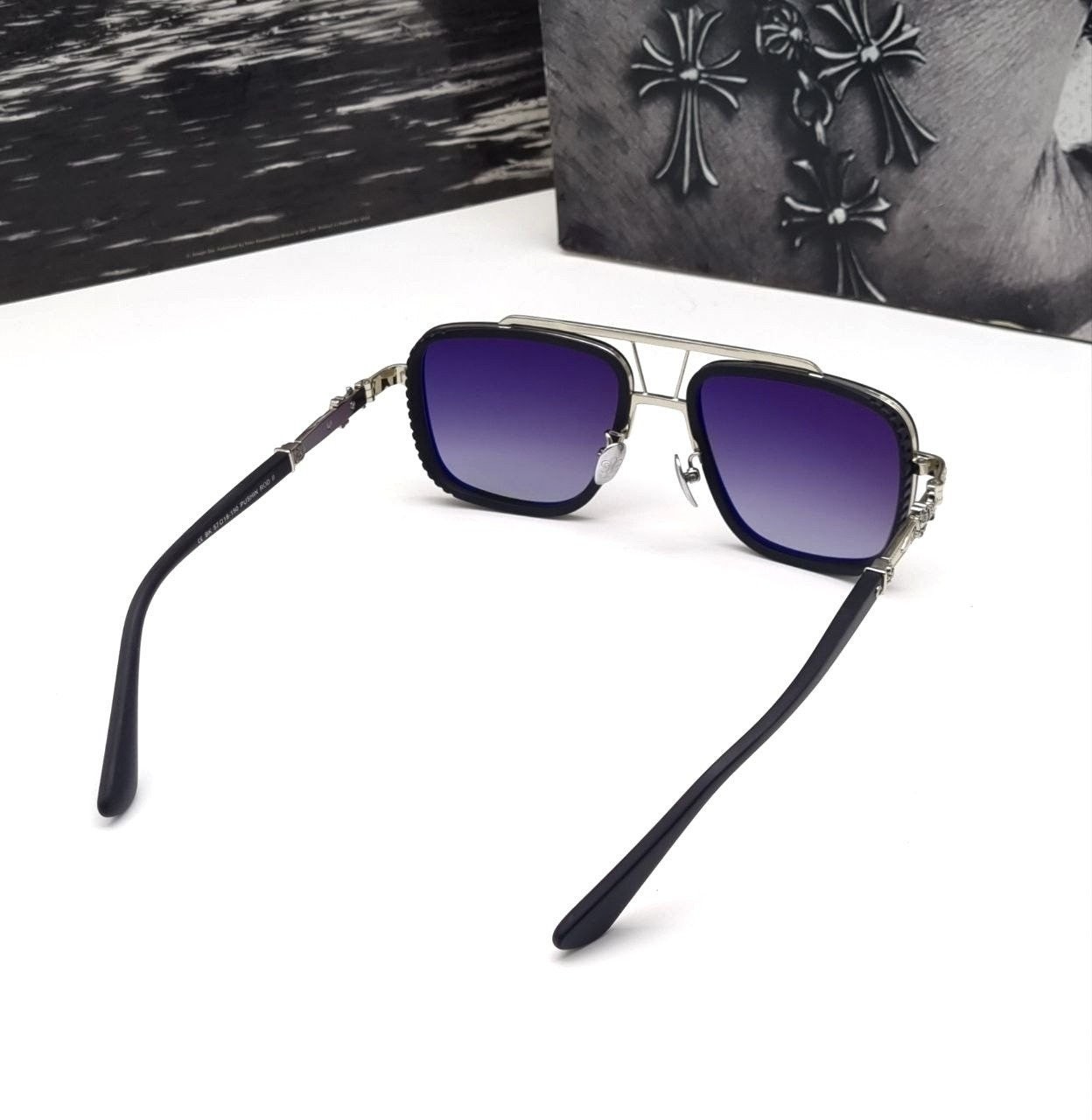투브릿지 라인과 측면의 윈드캡 형식의 볼드함과 템블의 십자가 장식이 입체적으로 제작된 모델로 최고급 선글라스