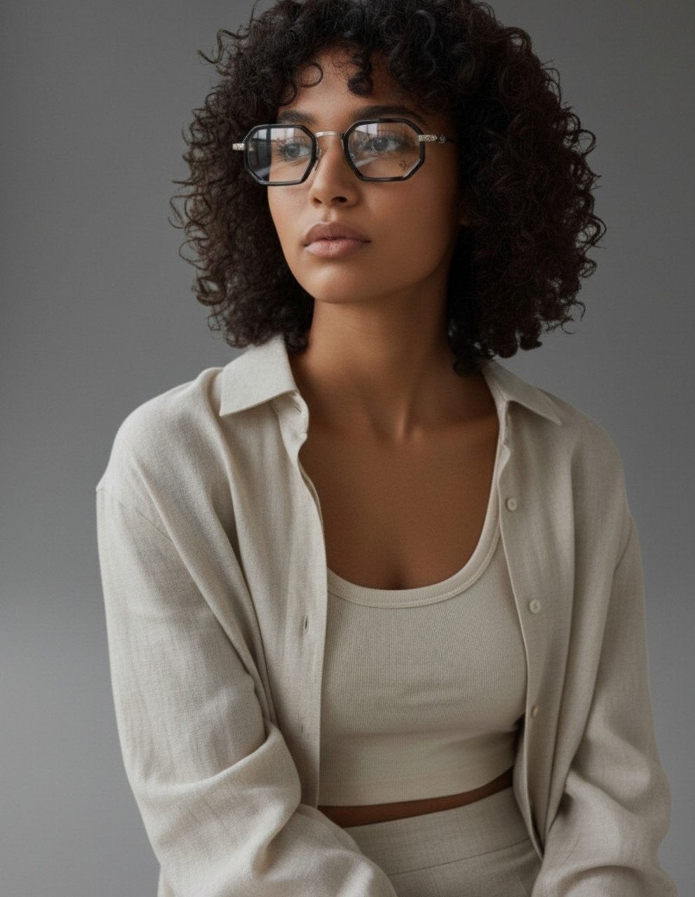 다각형 콤비스타일 안경으로 입체적 제작된 모델로 호불호없이 남녀노소 누구나 잘어울리는 디자인