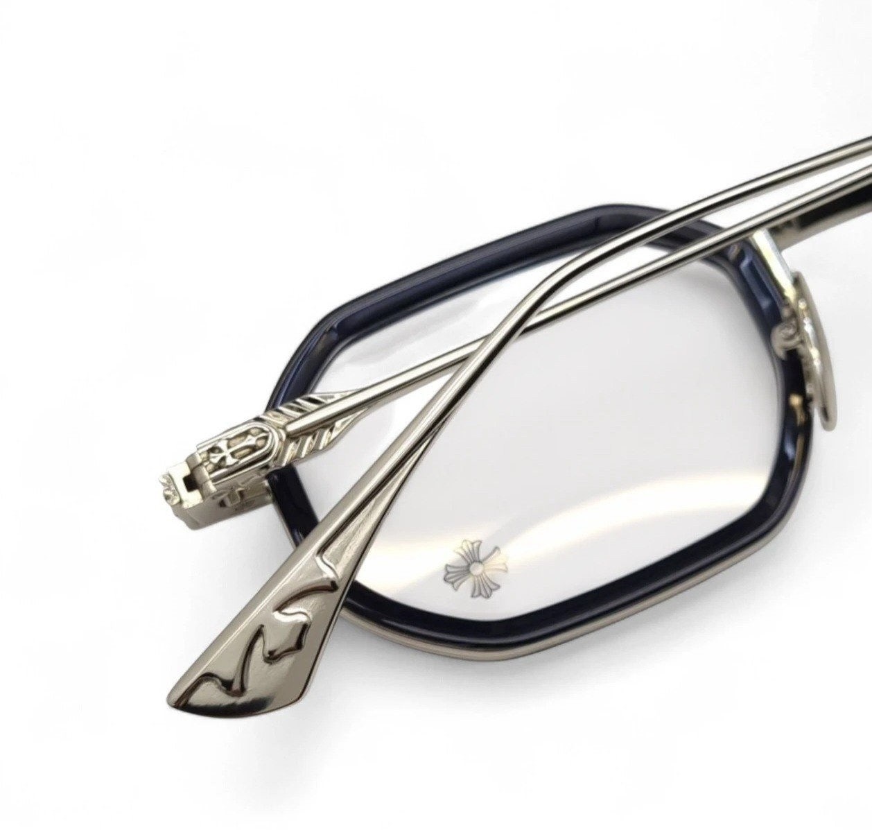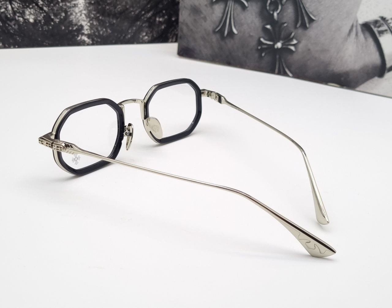 옆라인 시그니처인 중세문양과 템플팁의 대거 디테일 장식이 깔끔하면서 아이엔티티가 녹아 들어간 럭셔리 안경
