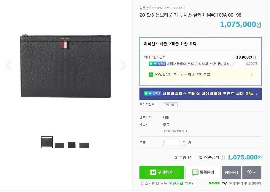 톰* 사선 가죽 클러치백 요약정보 및 구매