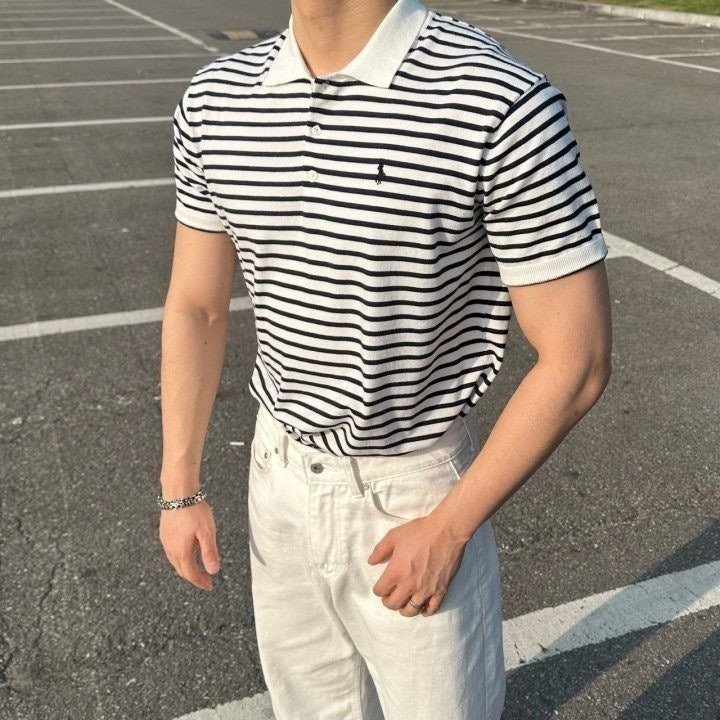 폴* 단가라 카라 반팔니트 > 국내의류