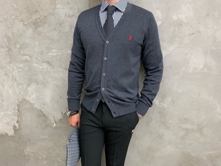 • 아* 스몰체인 레드하트 V넥 울가디건수입풀