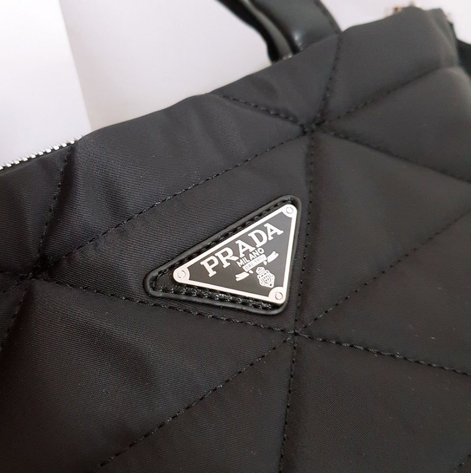 프** 고급 리나일론 나파 트라이앵글 퀼팅 패딩 더블핸들 지퍼 포켓 토트 블랙 요약정보 및 구매