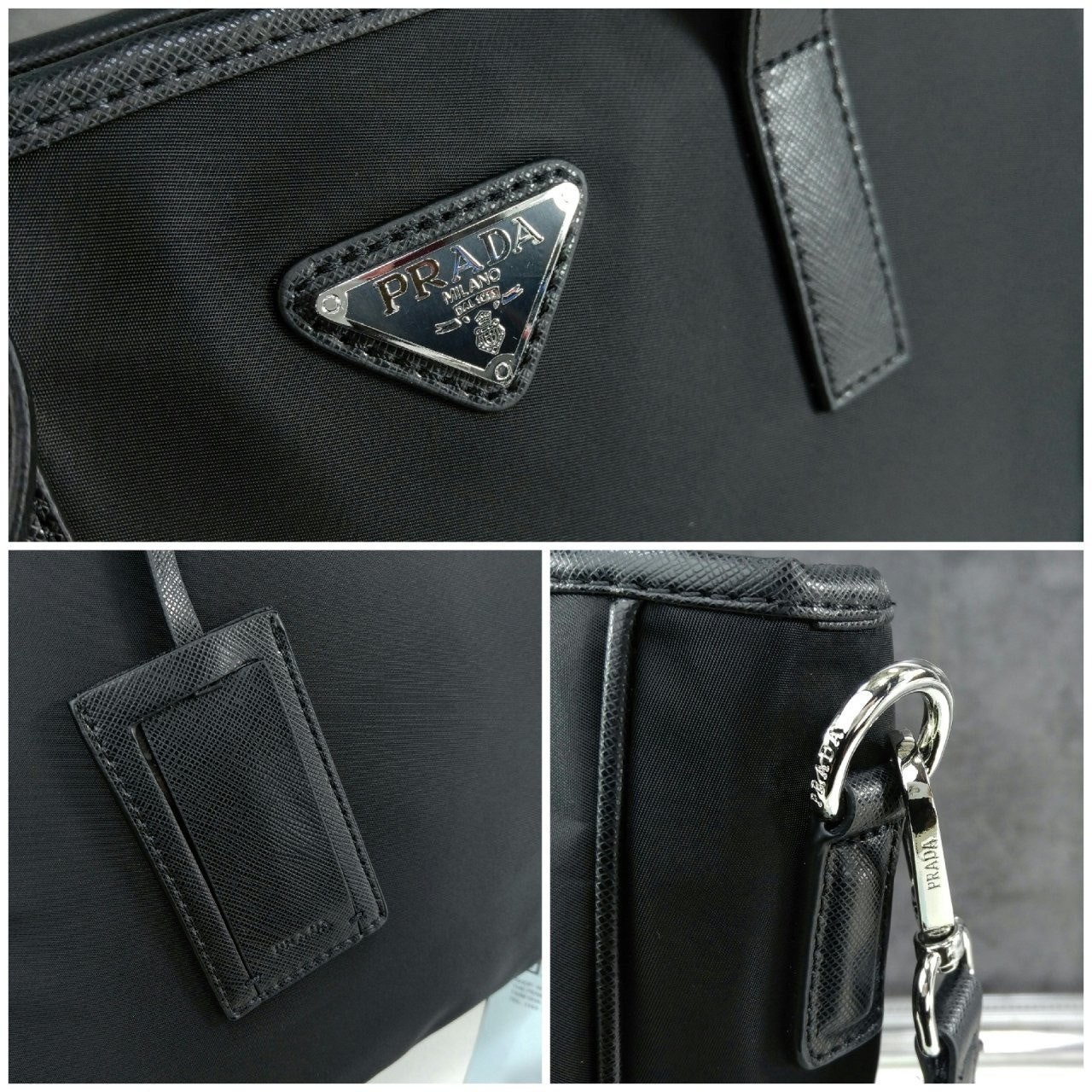 • 프** 2VG042973 F0002 메탈 삼각로고 나일론 버클 토트백 블랙 공용 가방