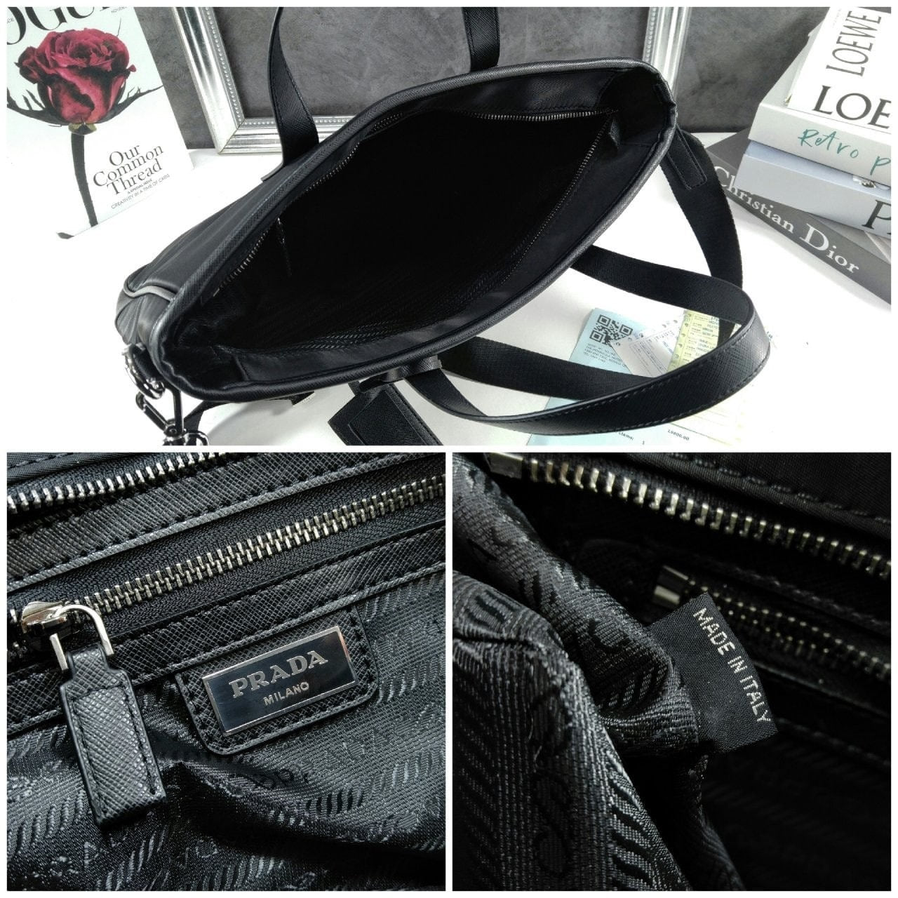 리나일론 소재로 제작한 토트 백으로, 매끄럽고 우아한 디자인.