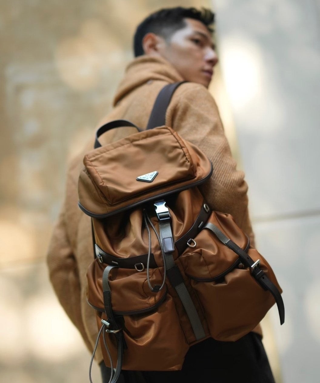 이 백팩은 세련미와 기능성을 완벽하게 결합한 제품으로, 부드러운 라인의 하이브리드 실루엣이 특징입니다. 디자인의 이중성은 가볍고 실용적인 리나일론과 가죽의 유행을 타지 않는 스타일의 조화로 반영됩니다. 넉넉하고 활용도가 높은 이 액세서리는 프**의 장인 정신을 반영하는 아이코닉한 디테일로 완성되었습니다.
