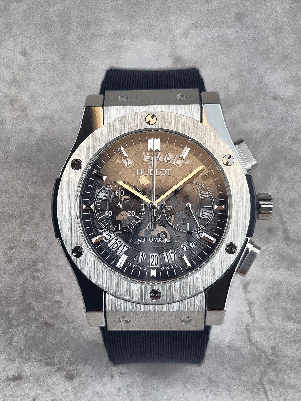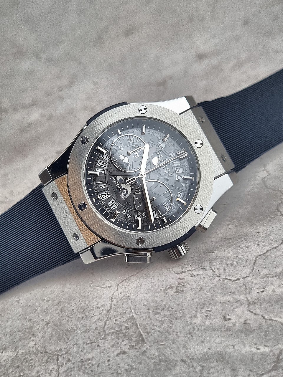 위**의 많은 컬렉션중 클래식퓨전의 상위버젼 에어로퓨전 스켈레톤 다이얼입니다.