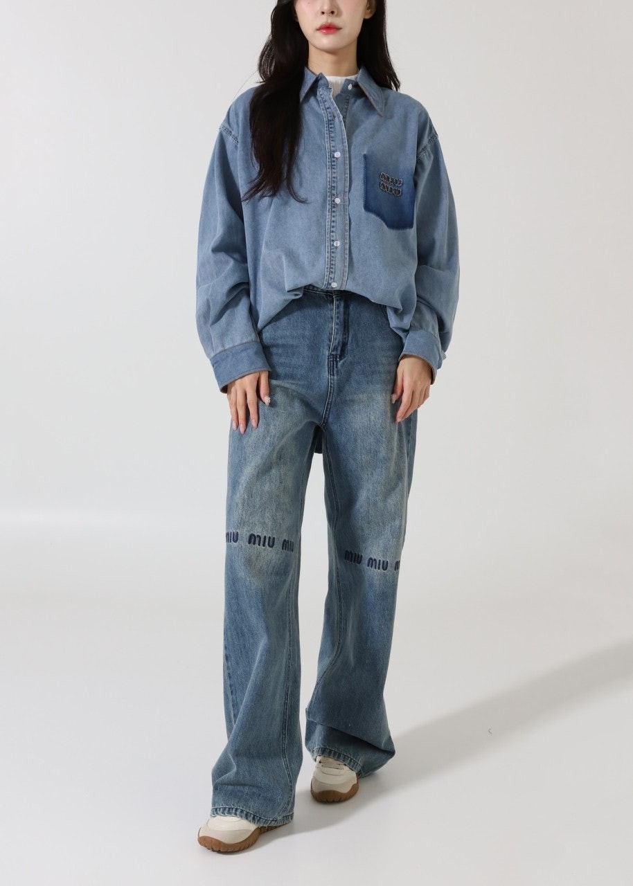 워시드 데님의 빈티지한 텍스처와 스웨이드 디테일,