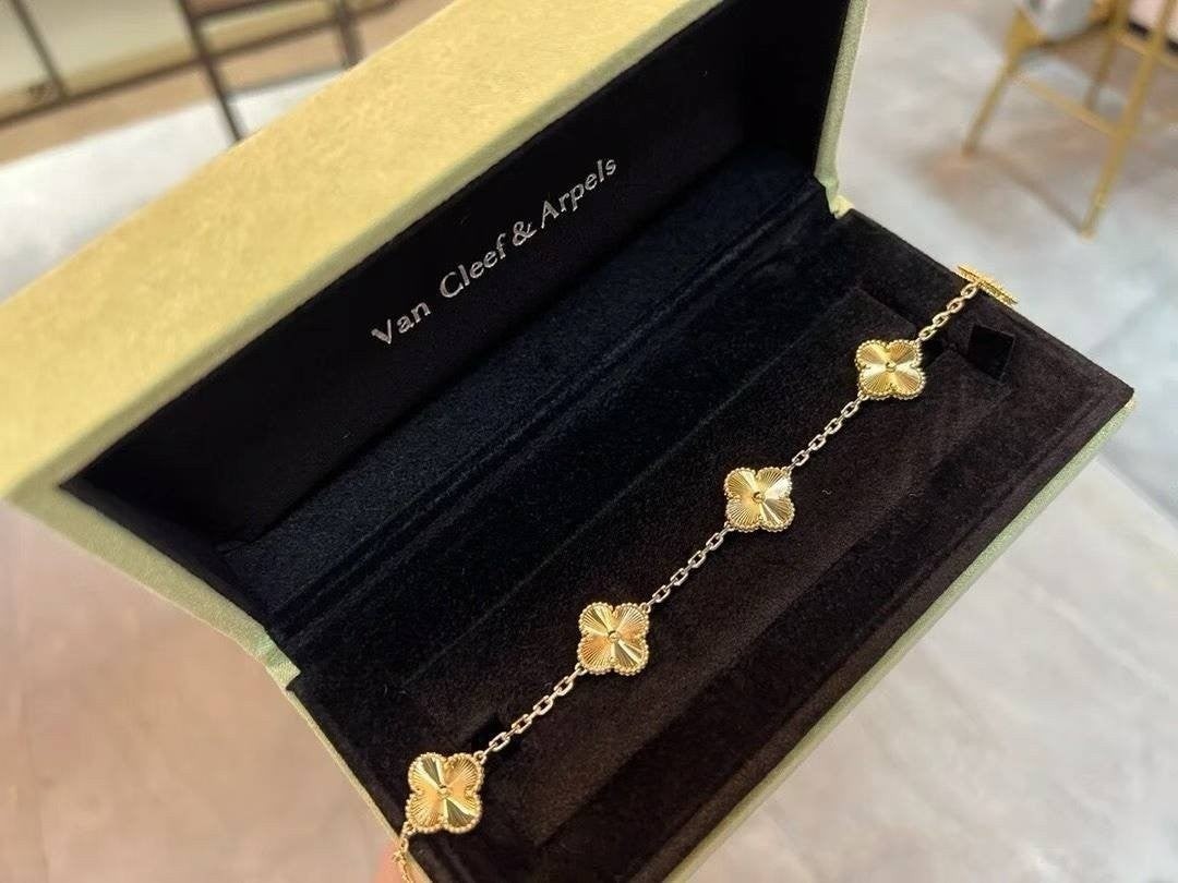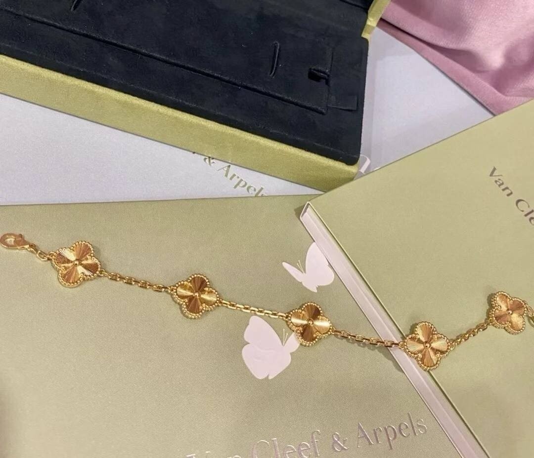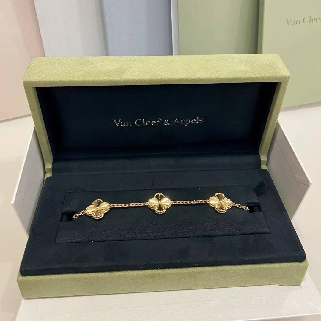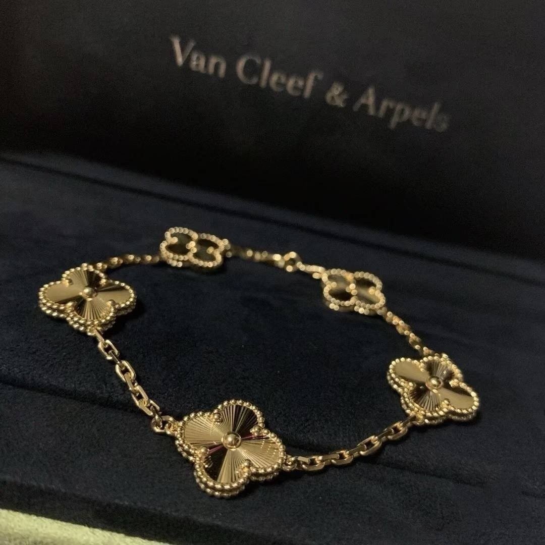 반*** 알함브라 5핀 팔찌 (골드) 는 고급스러운 서지컬 스틸 소재으로 시그니쳐 클리프 라인 디자인과 레드 칼라 로 어느장소 어떤곳에서 착용 하더라도 만족스러운 팔찌입니다.각인부터 모든게 완벽한 제품입니다.