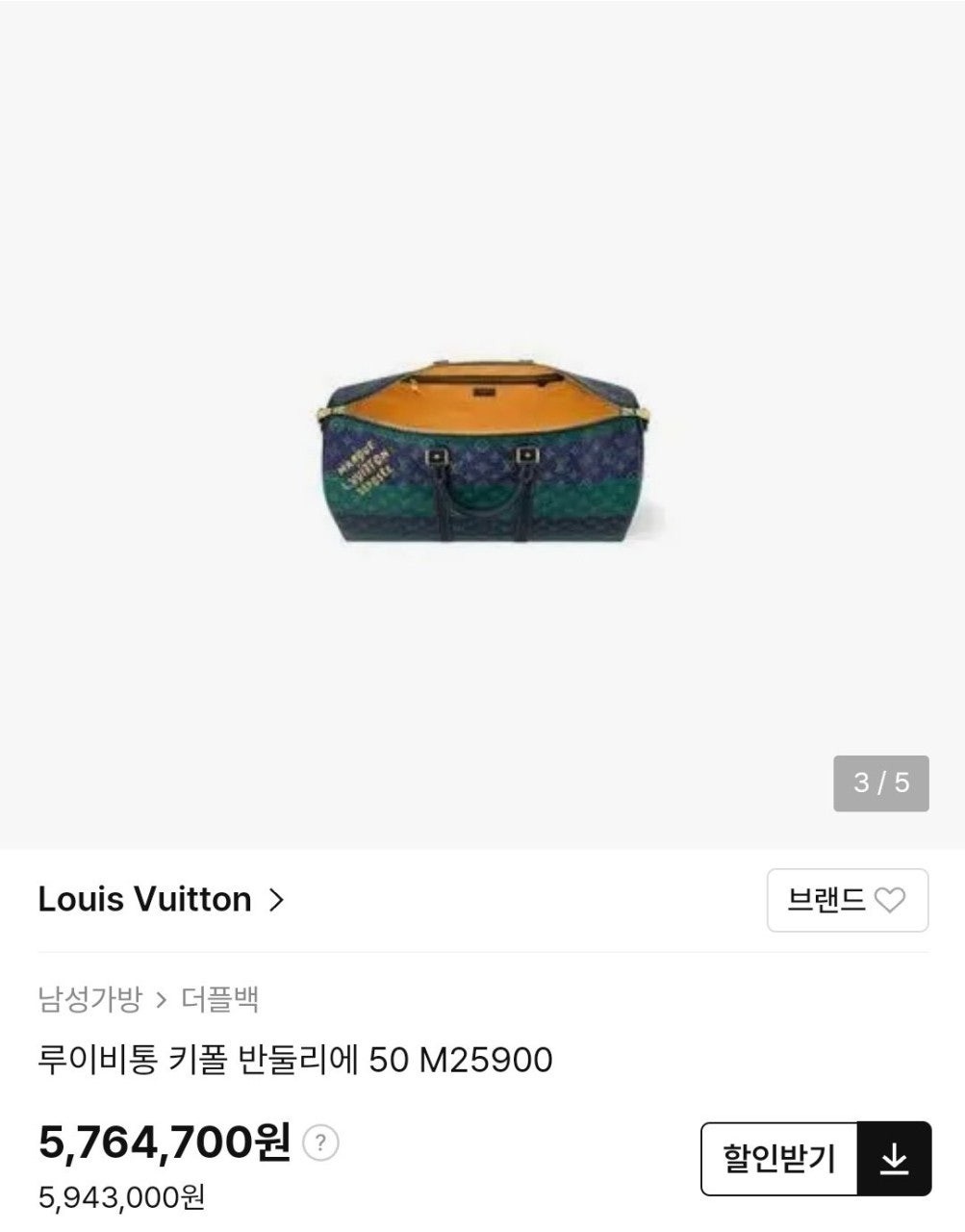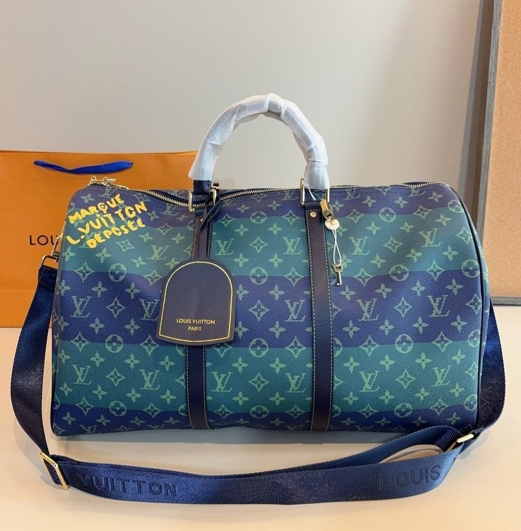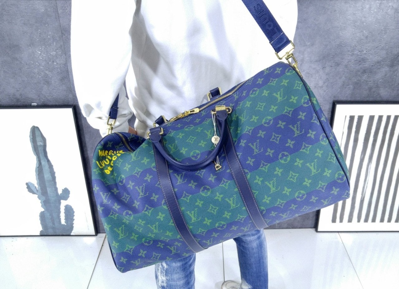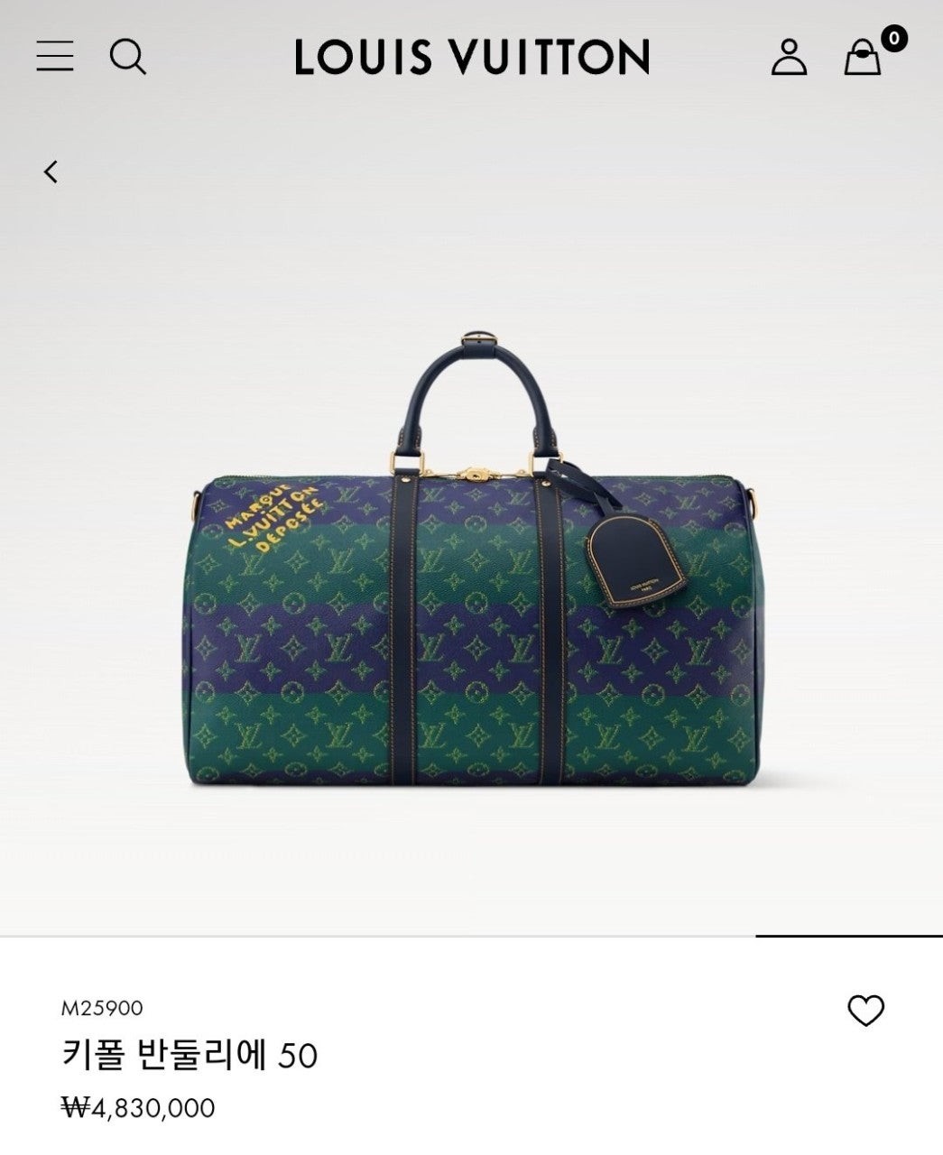 2026 SS 50영국 럭비의 색상에서 영감을 받아 퍼렐 윌리엄스가 강렬한 색조의 스트라이프를 더해 모노그램 코팅 캔버스 소재로 재해석한 키폴 반둘리에 50. 카우하이드 가죽 소재의 상단 핸들, 보강 밴드와 색감이 조화를 이루는 디자인. 한층 스포티한 분위기를 강조하는 스트라이프 디테일의 탈착 가능한 스트랩. 사프란 색상의 텍스타일 소재 안감. 하우스 고유의 감성을 자아내는 ‘Marque L. Vuitton Déposée’ 레터링.