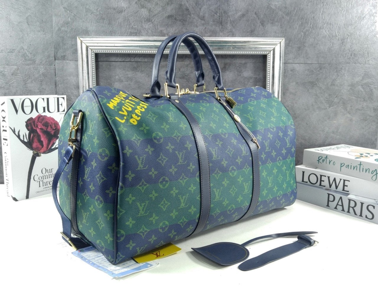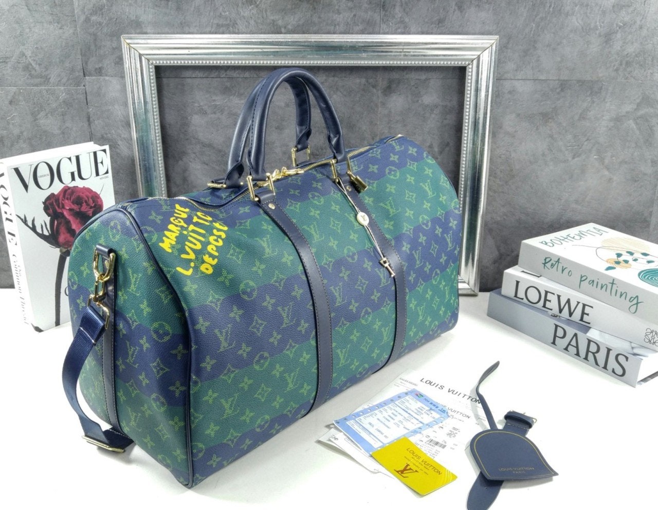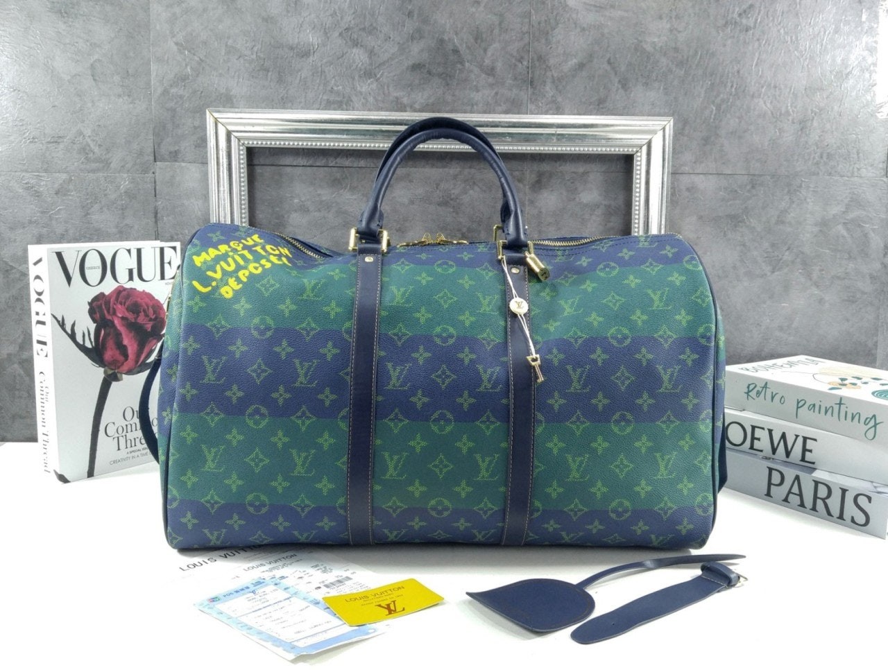 2026 SS 50영국 럭비의 색상에서 영감을 받아 퍼렐 윌리엄스가 강렬한 색조의 스트라이프를 더해 모노그램 코팅 캔버스 소재로 재해석한 키폴 반둘리에 50. 카우하이드 가죽 소재의 상단 핸들, 보강 밴드와 색감이 조화를 이루는 디자인. 한층 스포티한 분위기를 강조하는 스트라이프 디테일의 탈착 가능한 스트랩. 사프란 색상의 텍스타일 소재 안감. 하우스 고유의 감성을 자아내는 ‘Marque L. Vuitton Déposée’ 레터링.