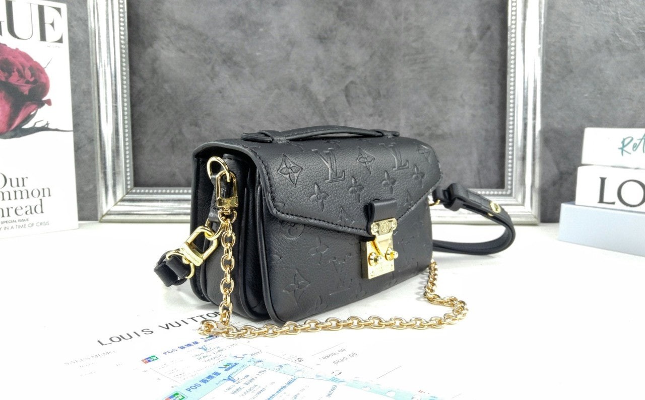 모노그램을 양각으로 새긴 모노그램 앙프렝뜨 가죽 소재로 선보이는 포쉐트 메티스 핸드백. 하우스의 시그니처 스타일과 현대적인 디테일이 조화를 이루는 디자인. 골드 색상 금속 소재의 유서 깊은 S락과 짧은 탈착형 체인이 돋보이는 트렌디한 실루엣. 깔끔하게 구성된 내부 수납공간 및 스마트한 조절형 스트랩. 활기찬 라이프스타일에 완벽하게 어울리는 컴팩트한 백.