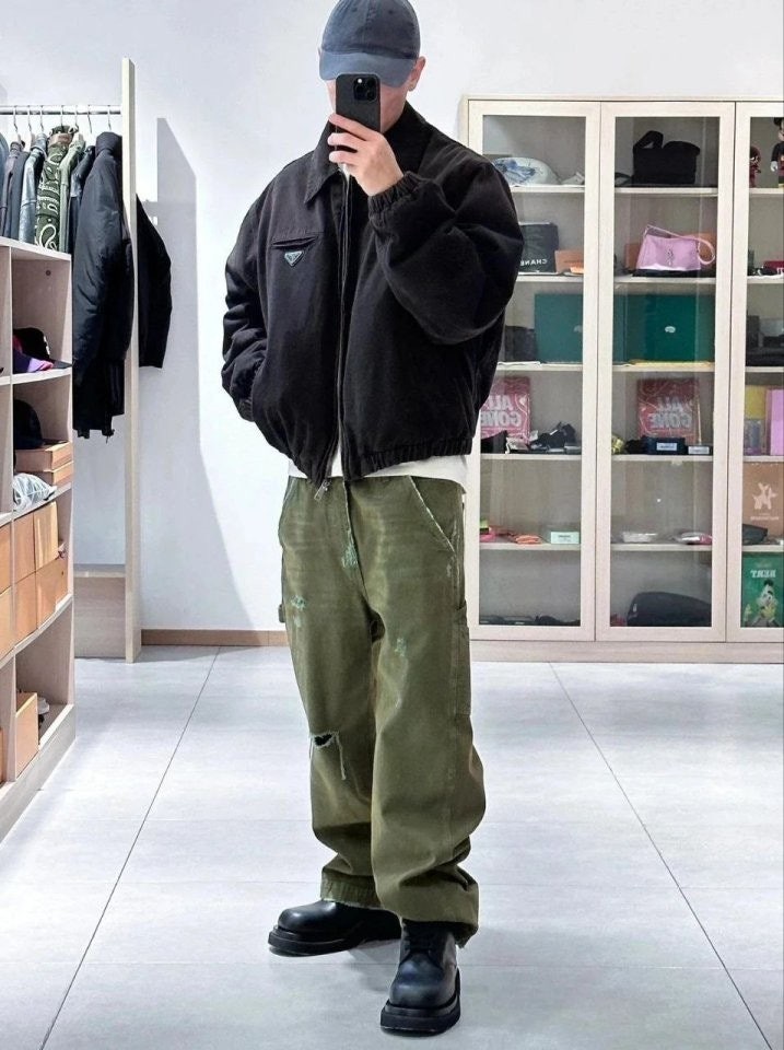 •원단은 수입된 블랙 코튼 무신축 원단을 사용하였으며, 고가의 맞춤 제작 RIRI 금속 지퍼와 KF 플레이트 로고가 특징입니다. 안감은 고밀도 견고한 직조 소재로 제작되었습니다!