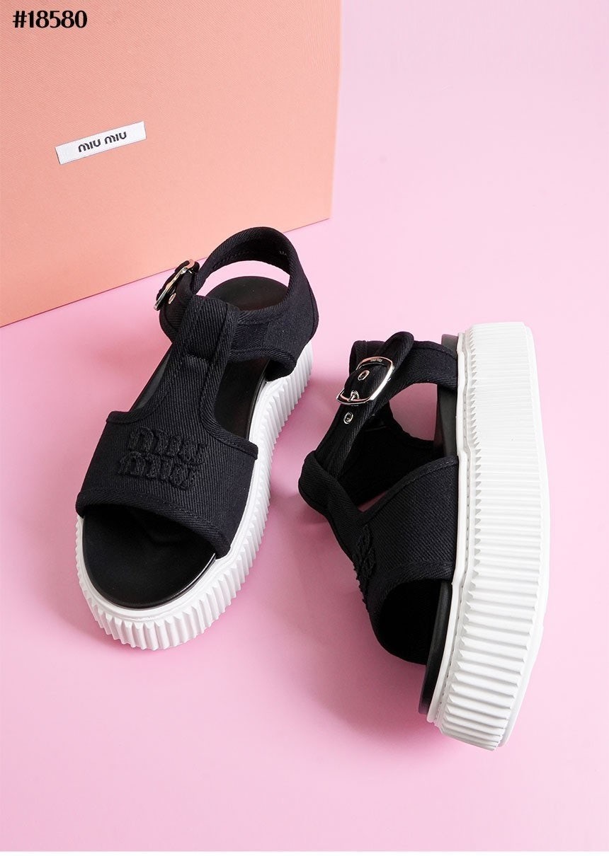 • 미*** 데님 플랫폼 샌들 블랙
