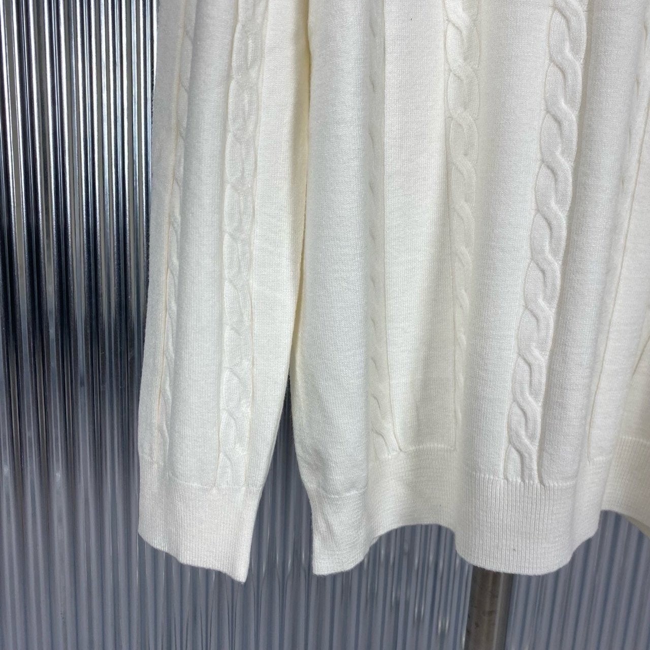 14게이지 편직으로 제작하여 니트지만 늘어나거나 쳐짐 현상 비침현상이 적으며 착용 시 거부감 없는 매끈한 표면을 실현하기위해 원사 자체에 효소가공을 하여 퀄리티를 높였으며 보풀이 잘 일어나지 않는 장점이 있습니다.