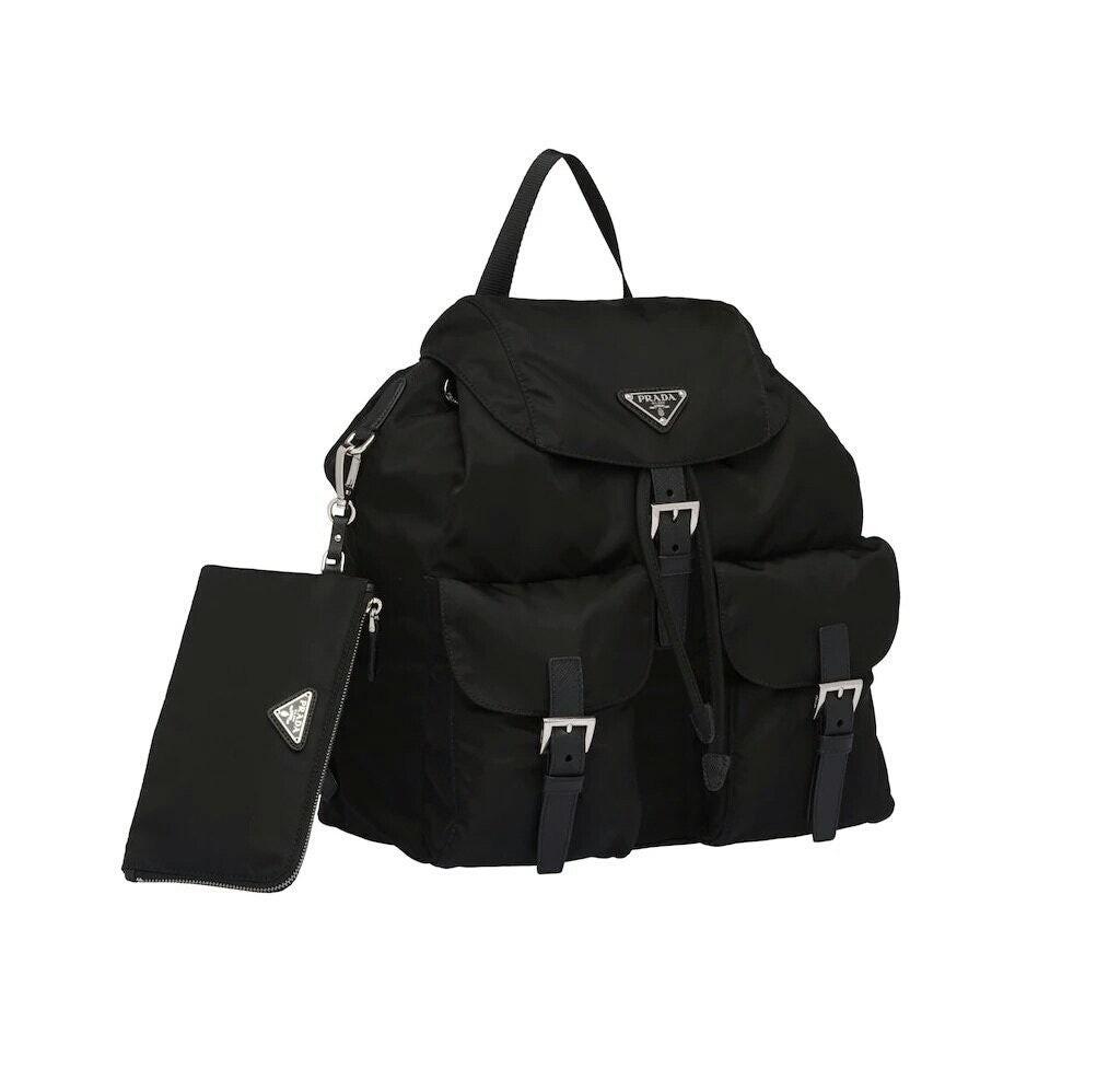 세련된 사피아노 가죽 트리밍 장식이 있는 나일론 백팩으로, 여러 재료를 조합해 모던한 매력과 변하지 않을 우아함을 표현했습니다. 메탈 트라이앵글 로고가 장식되어 있습니다.