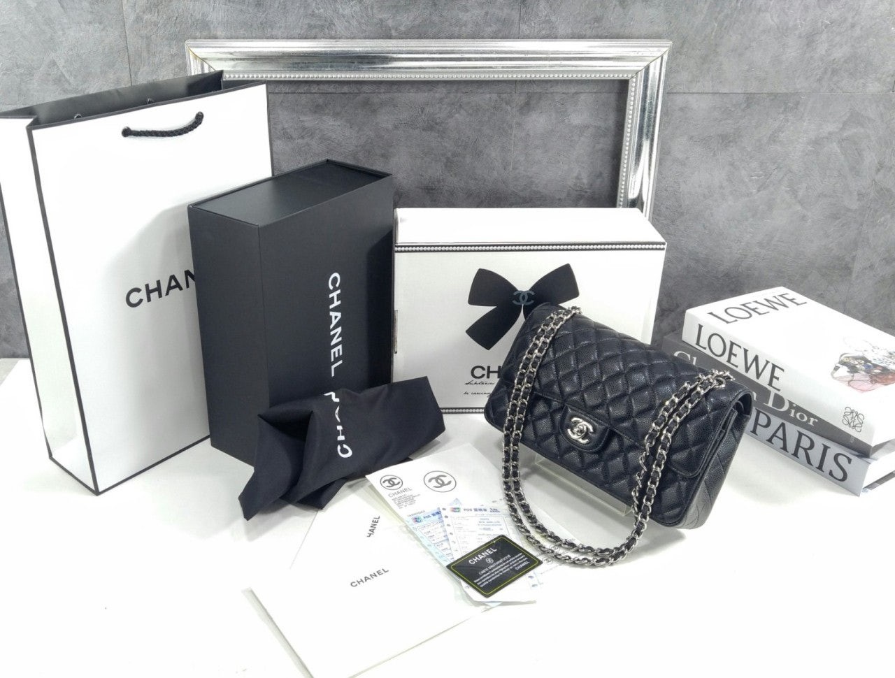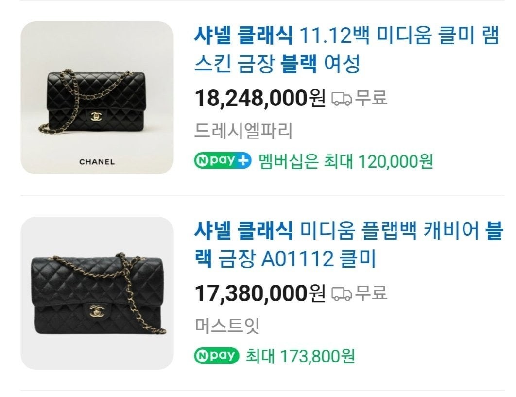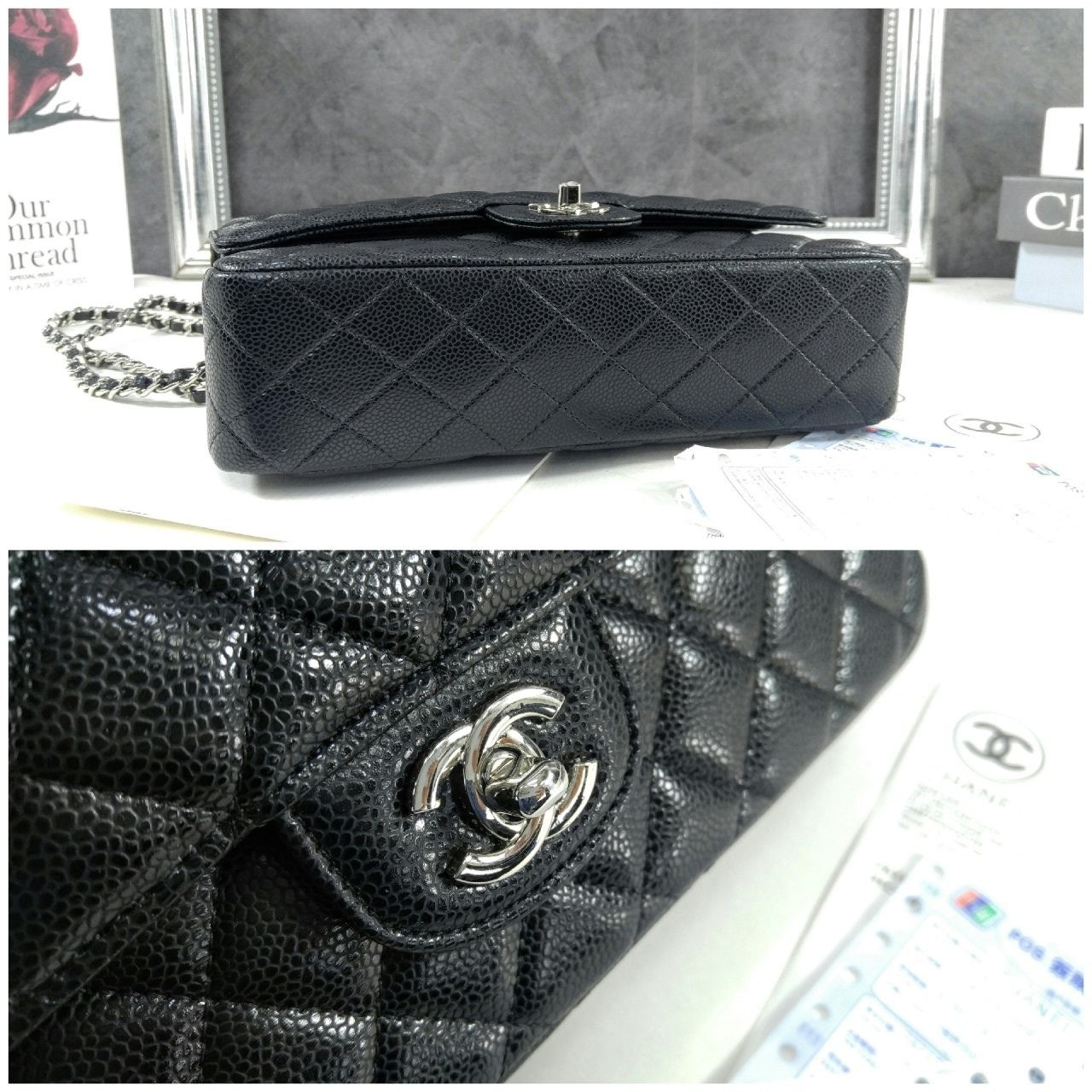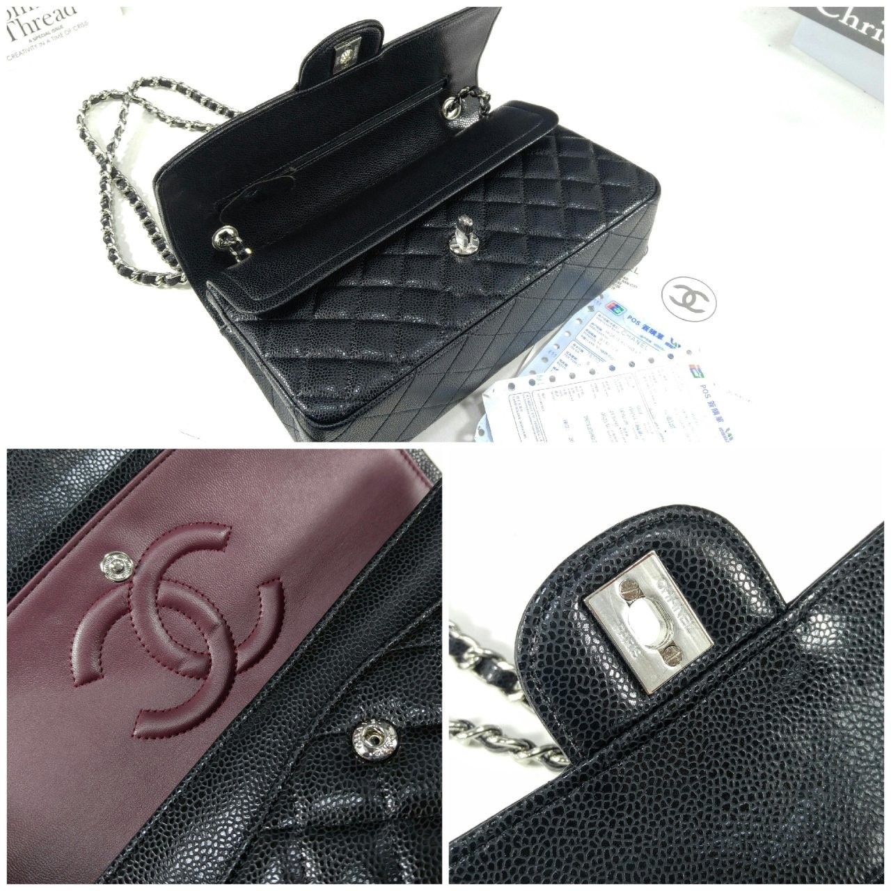 샤* NEW 클래식 미디움 플랩백 그레인드 카프스킨 실버 메탈 블랙 풀박스 요약정보 및 구매