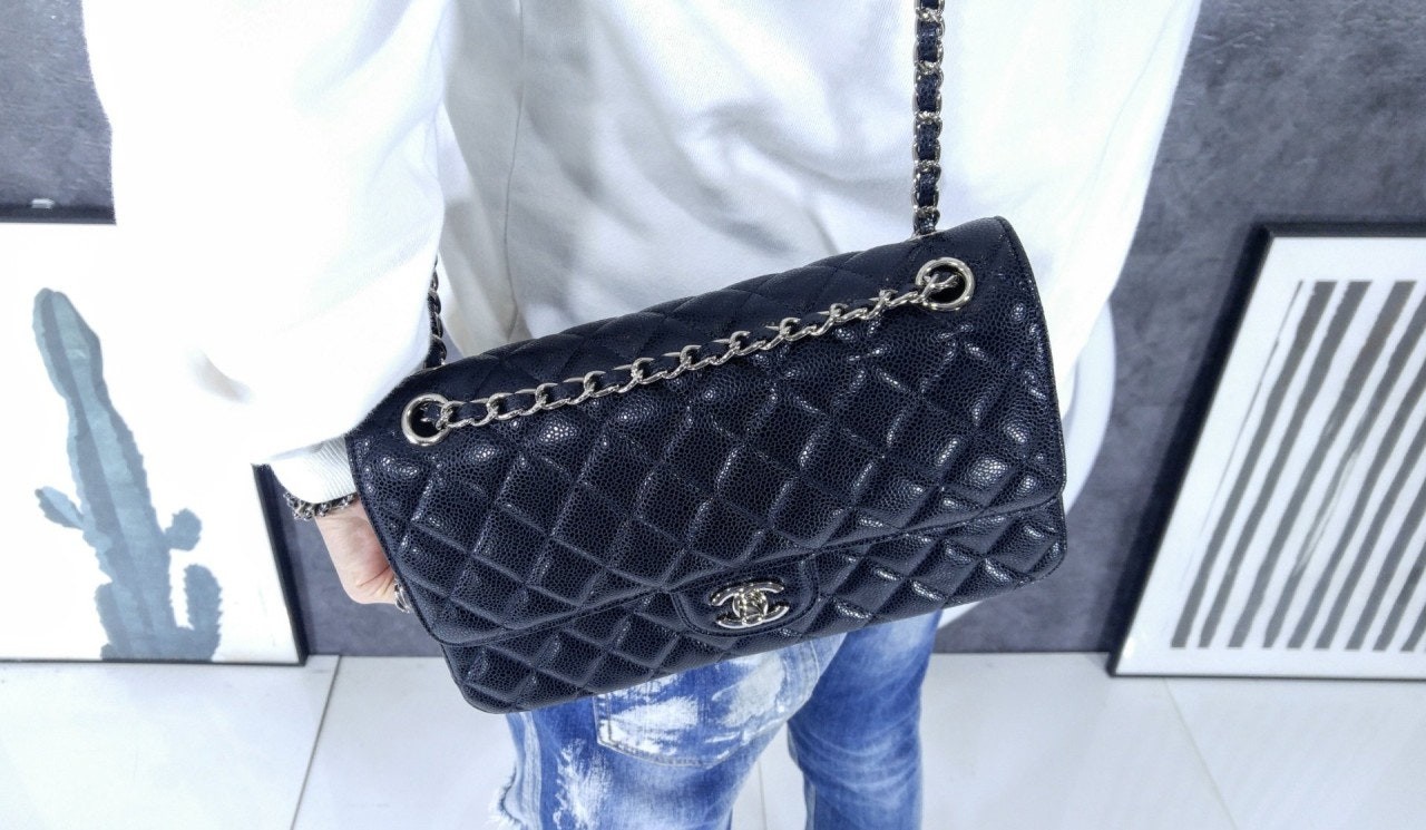 샤* NEW 클래식 미디움 플랩백 그레인드 카프스킨 실버 메탈 블랙 풀박스 > 가방&지갑