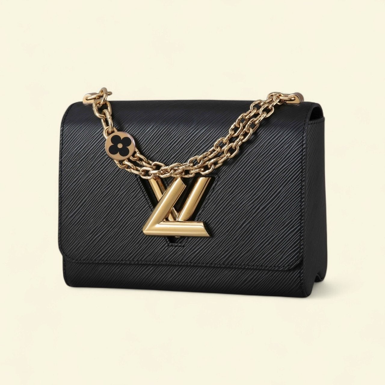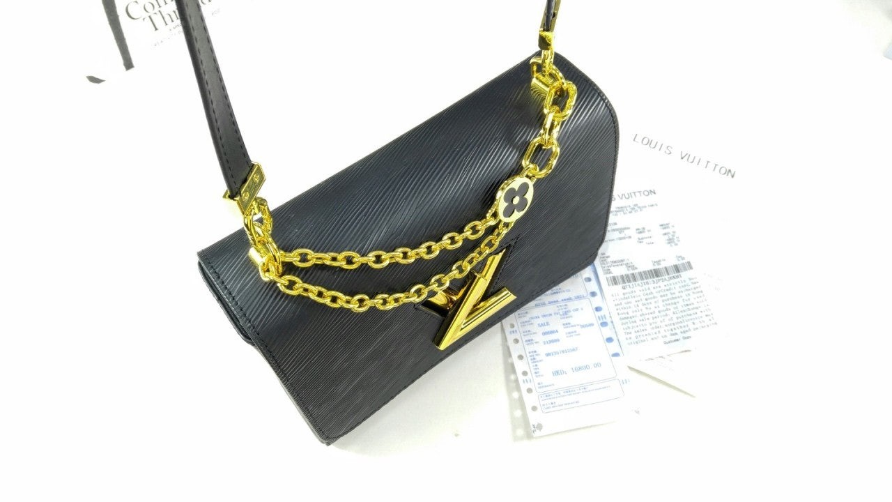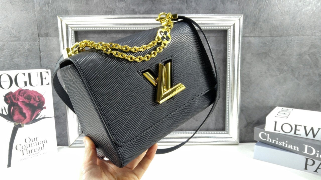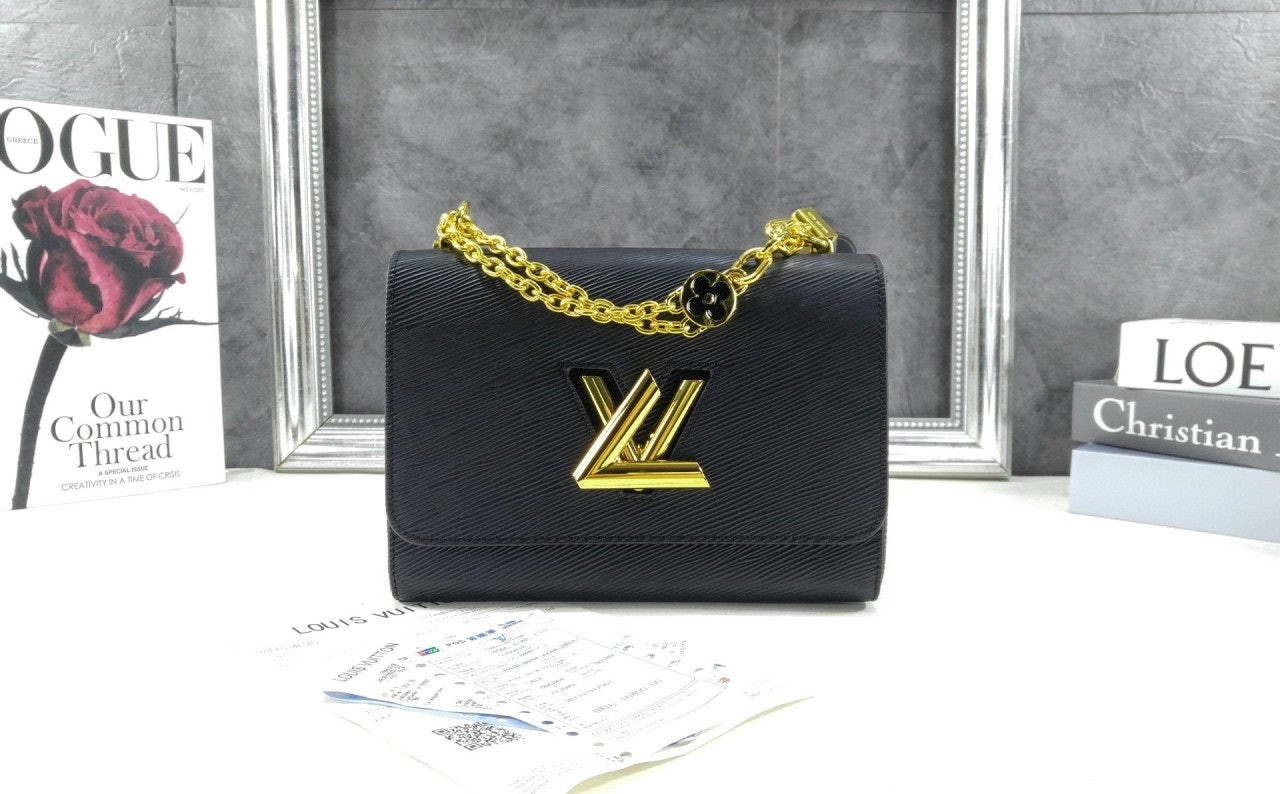 골드 LV 트위스트 턴락 잠금이 현대적이고 클래식한 감성을 돋보여줍니다.