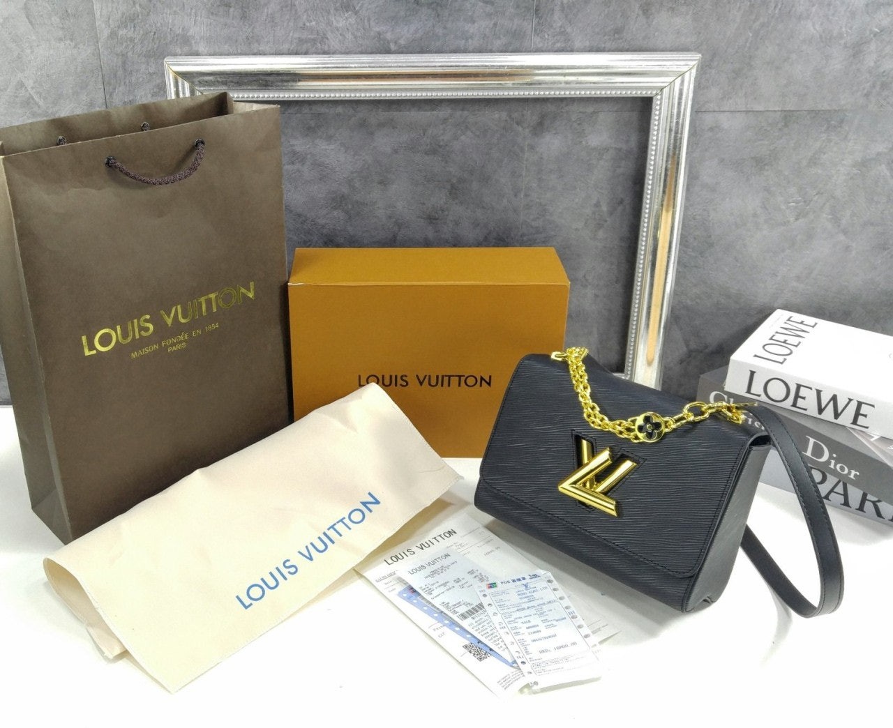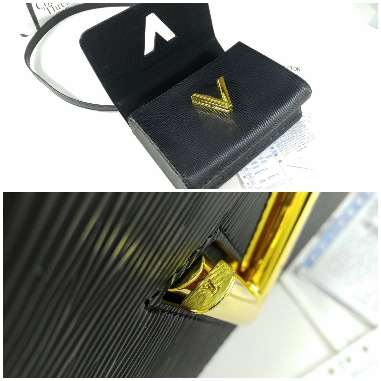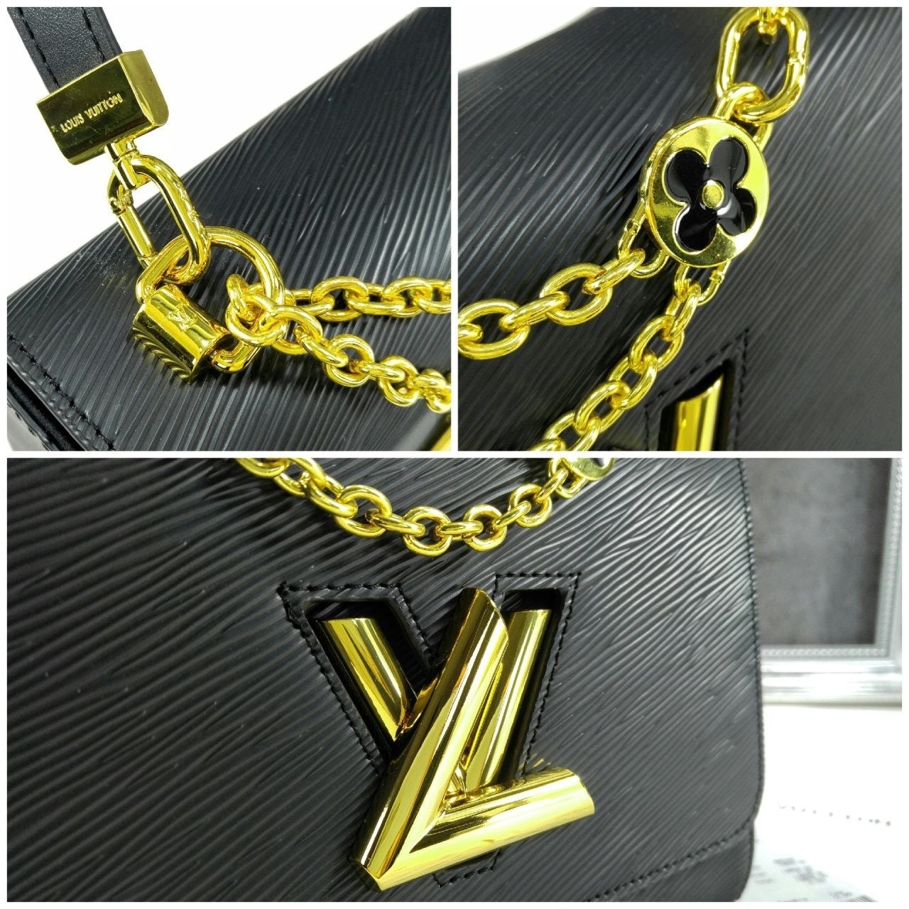 골드 LV 트위스트 턴락 잠금이 현대적이고 클래식한 감성을 돋보여줍니다.
