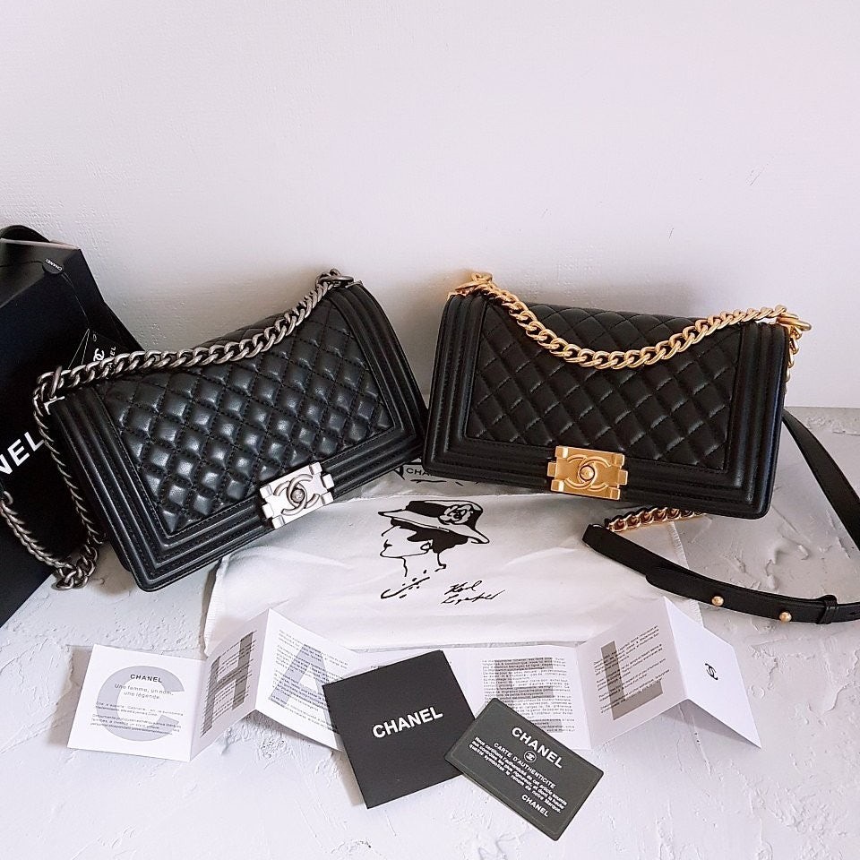 • 샤* 고급 램스킨 보이백 금장
