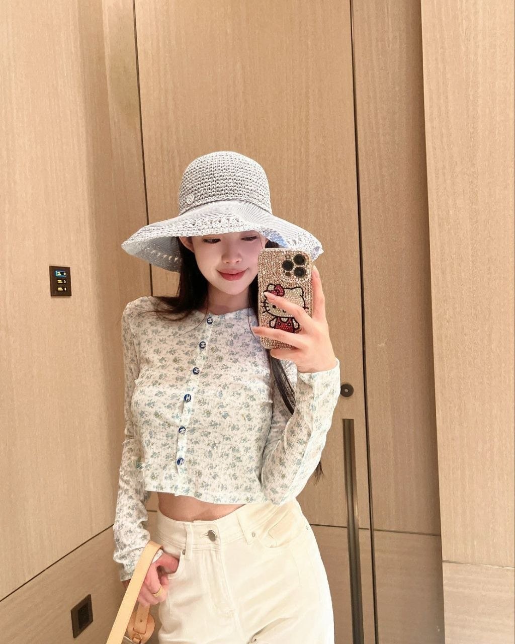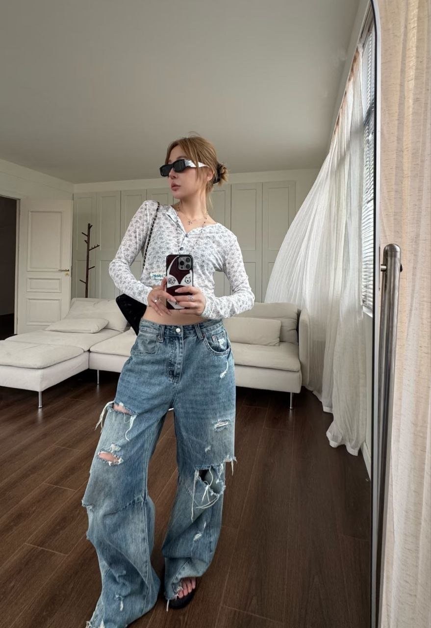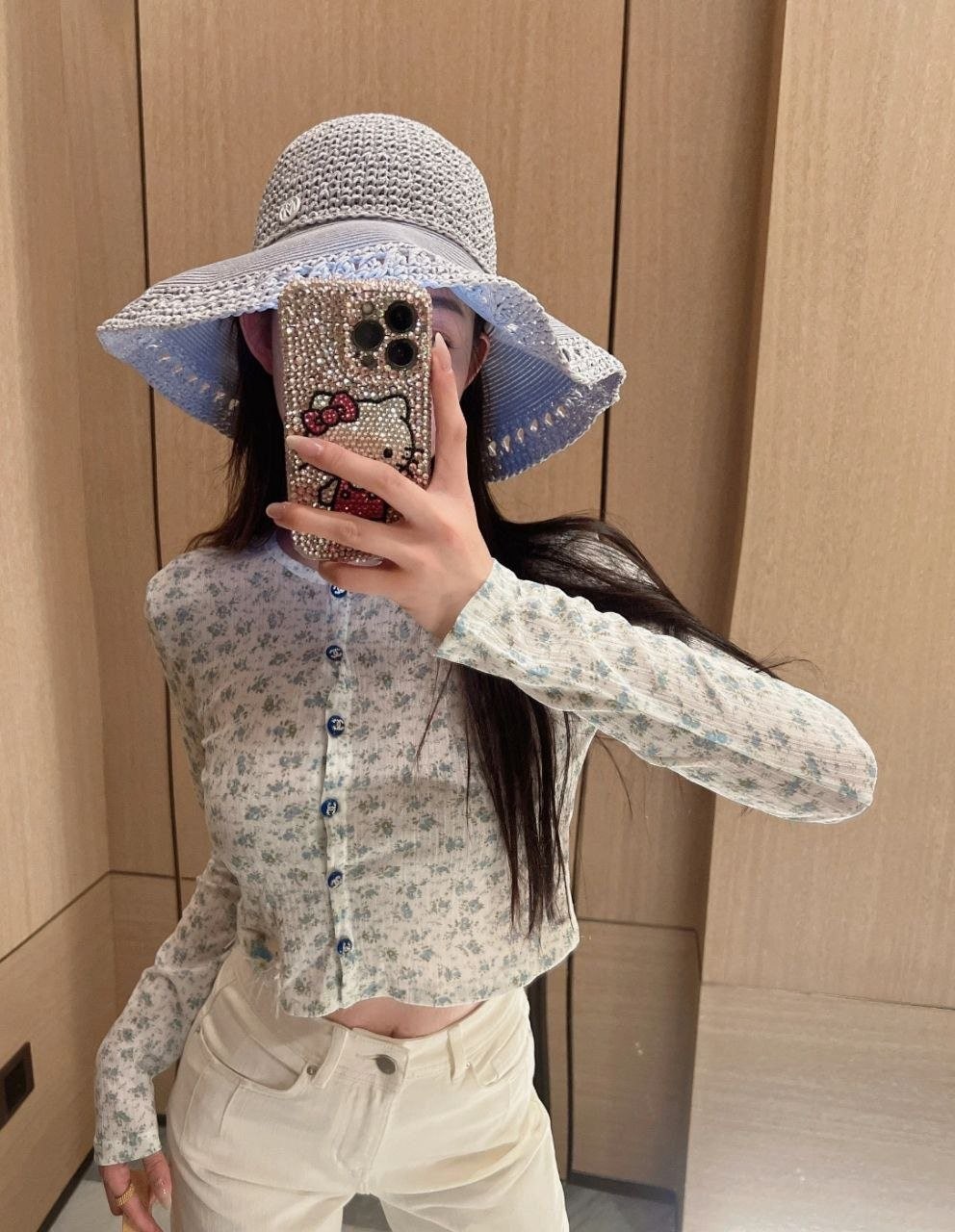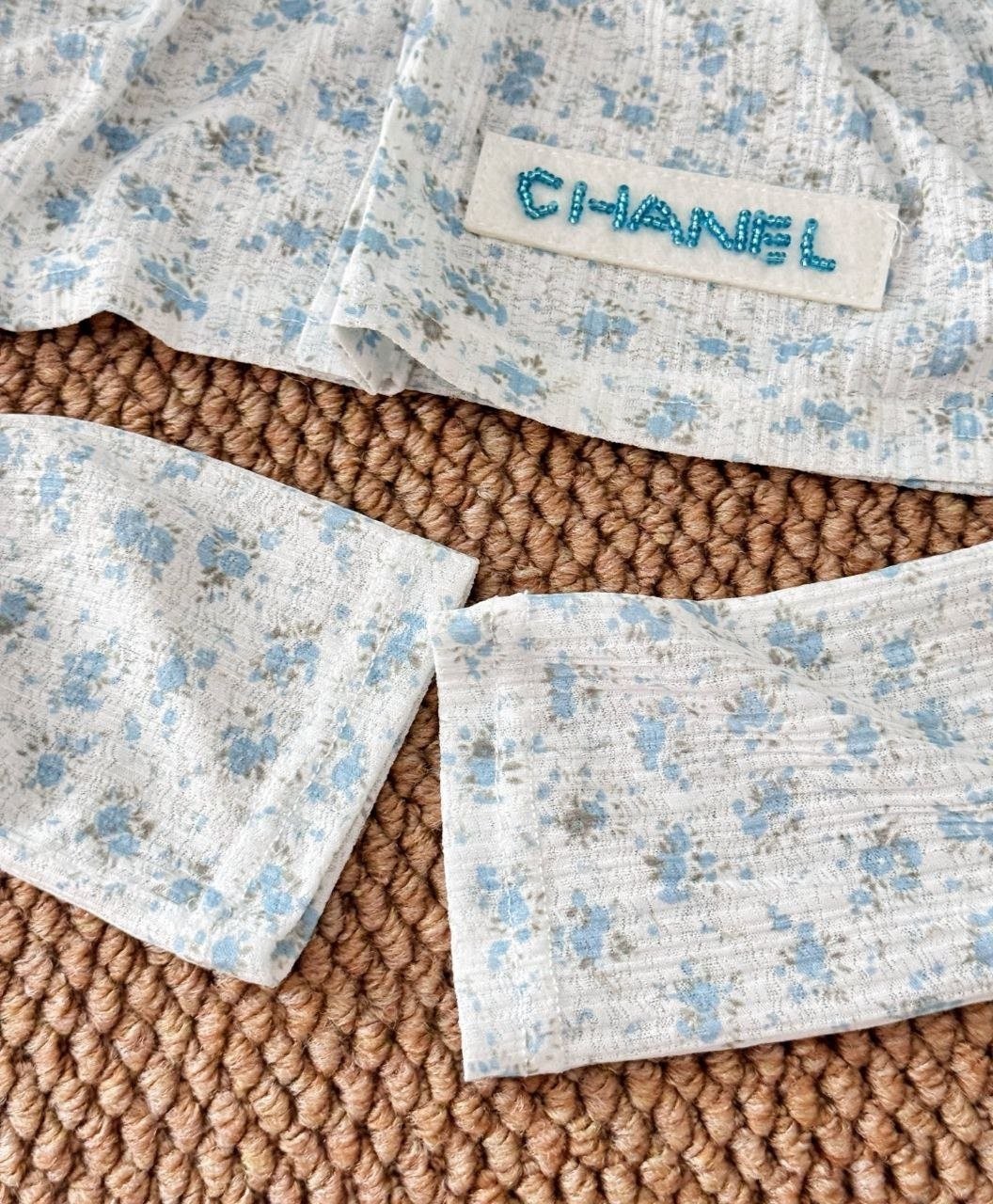 •블루 톤의 무드가 돋보이는 달콤하고 귀여운 미니 플라워 패턴입니다. 시각적으로 더 시원해 보이게 해주는 스타일로, 얇은 가디건 하나만으로도 분위기가 확 살아납니다. 정말 예쁘고 세련된 느낌이에요. 인스타에서 인기 많은 샤* 스타일의 꽃무늬 탑으로, 맞춤 제작한 원단과 단추 등 디테일이 정교합니다.