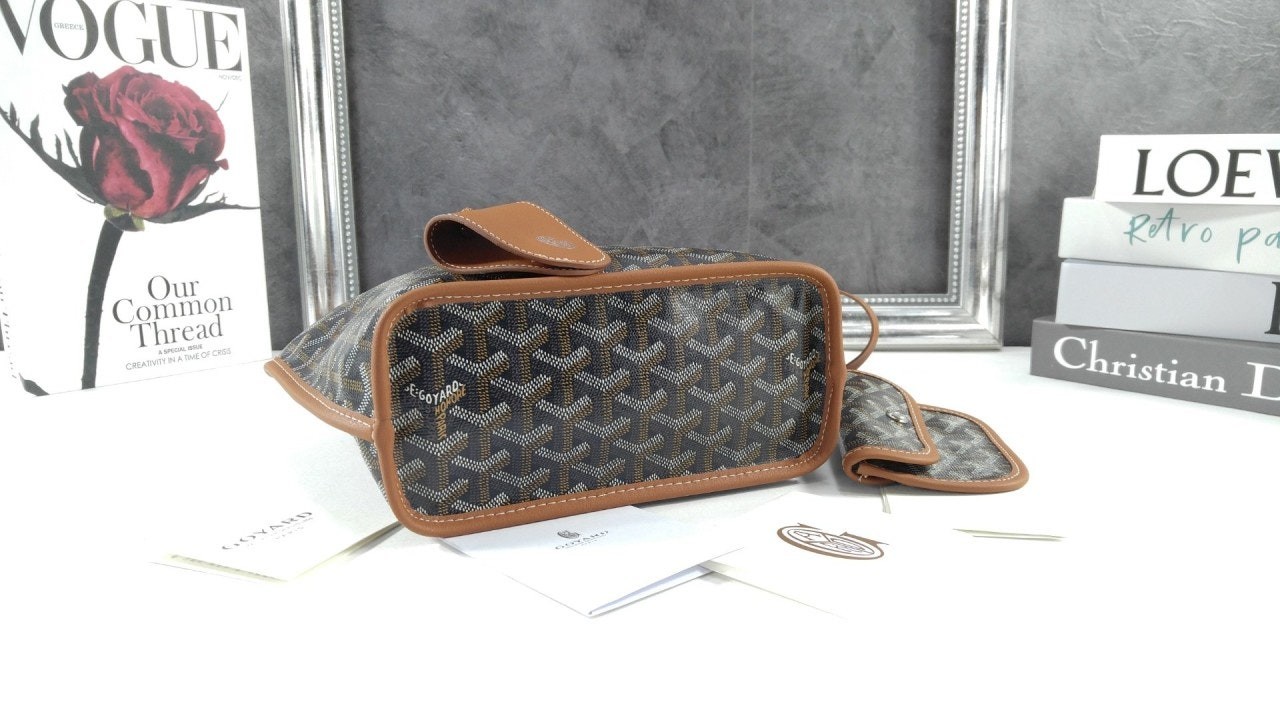 고**를 대표하는 생루이 백에서 영감을 얻어, 고야딘 캔버스 라이닝을 더한 가죽 버전의 백입니다. 두 가지 스타일로 연출할 수 있습니다. 가느다란 핸들이 있어, 손으로 잡고 편안하게 운반할 수 있도록 합니다. 앙주 미니는 미니어쳐 사이즈로 저녁 외출을 위해 사용하거나, 하루 종일 소지품을 휴대하기에도 이상적입니다.