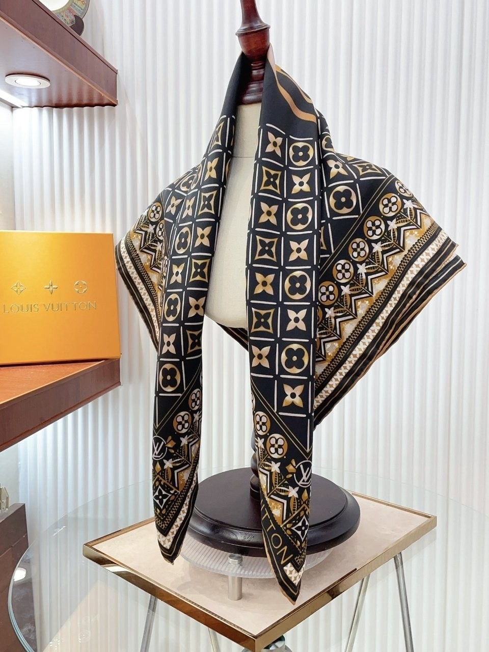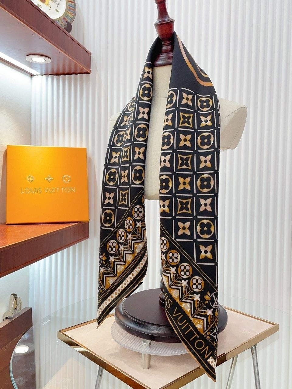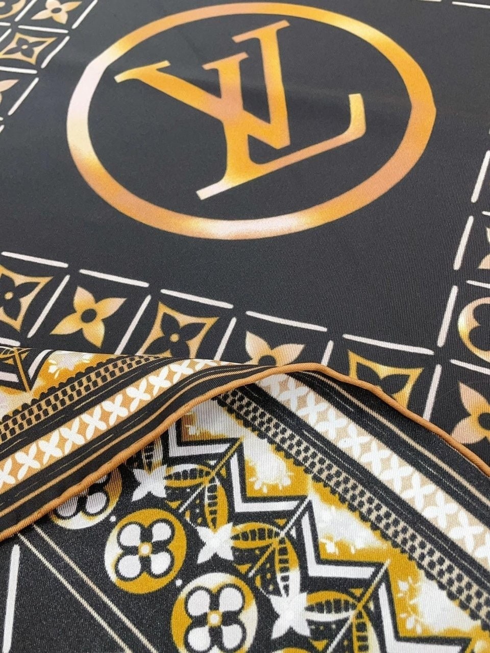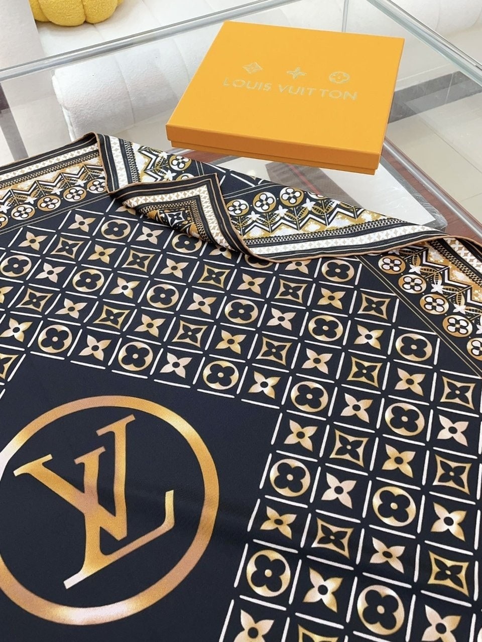 • 루* 골드모노그램 로고 스카프