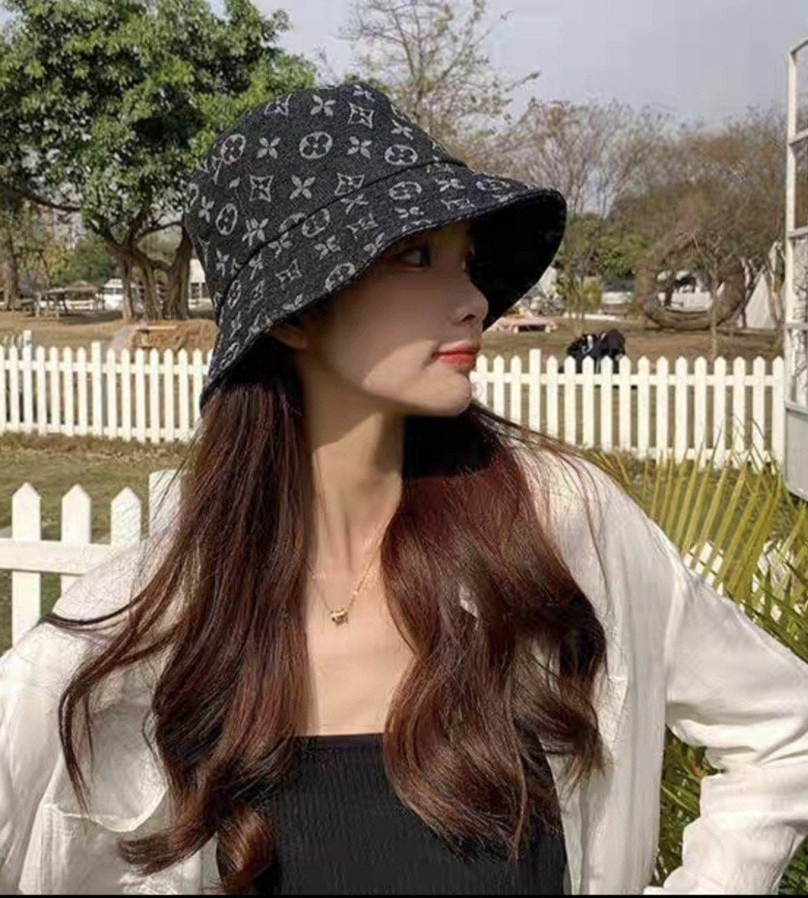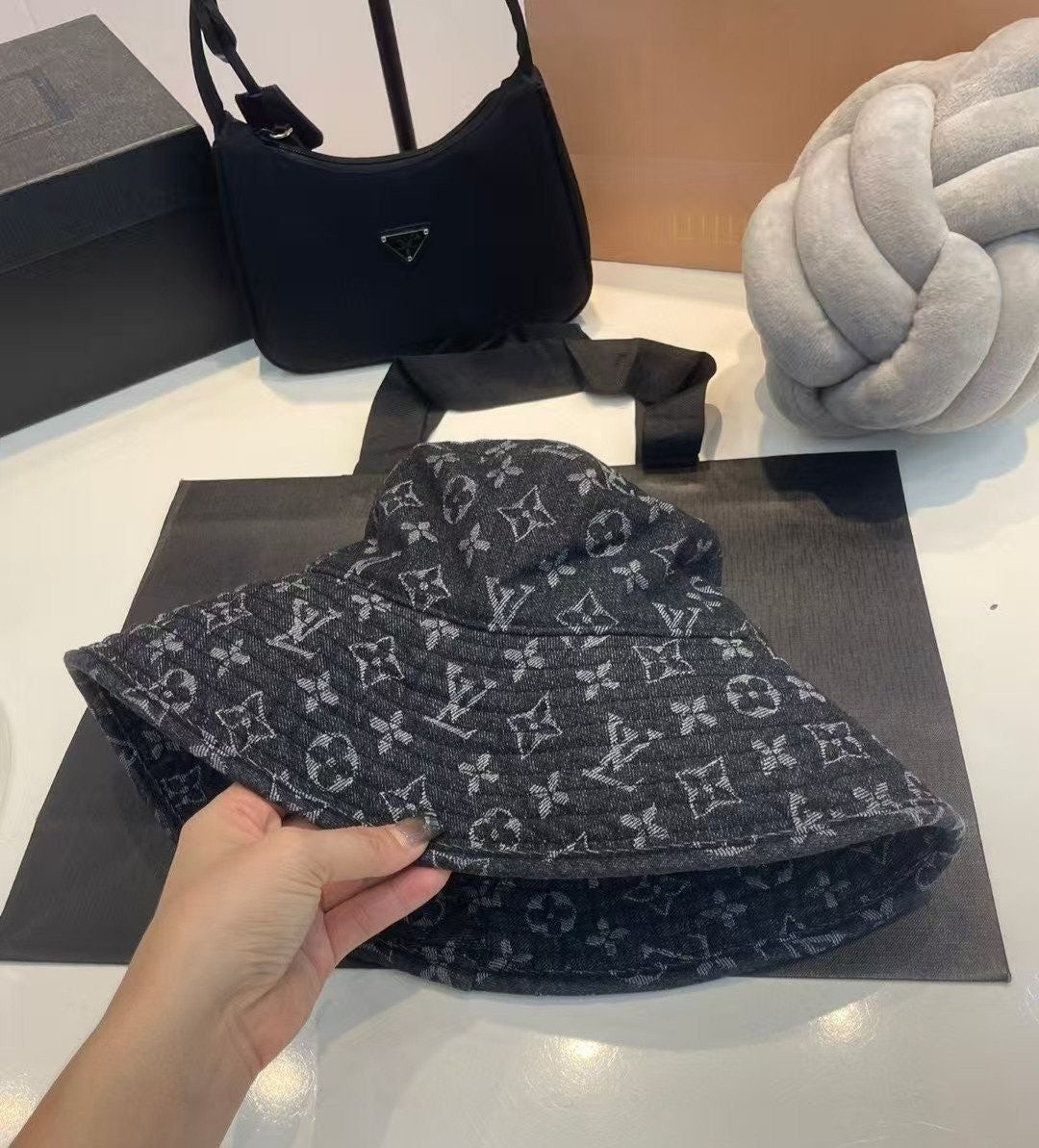 • 루* 모노그램 데님 자가드 버킷햇 수입
